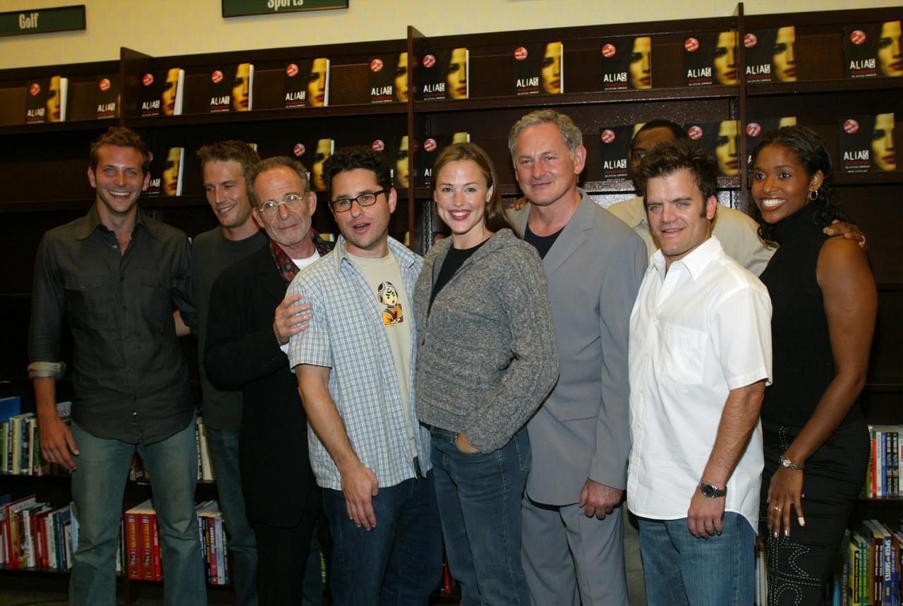 ドラマ『エイリアス』のキャストと一緒に撮影した写真。中央にいるのがジェニファーで、左端で笑顔を見せているのがブラッドリー。