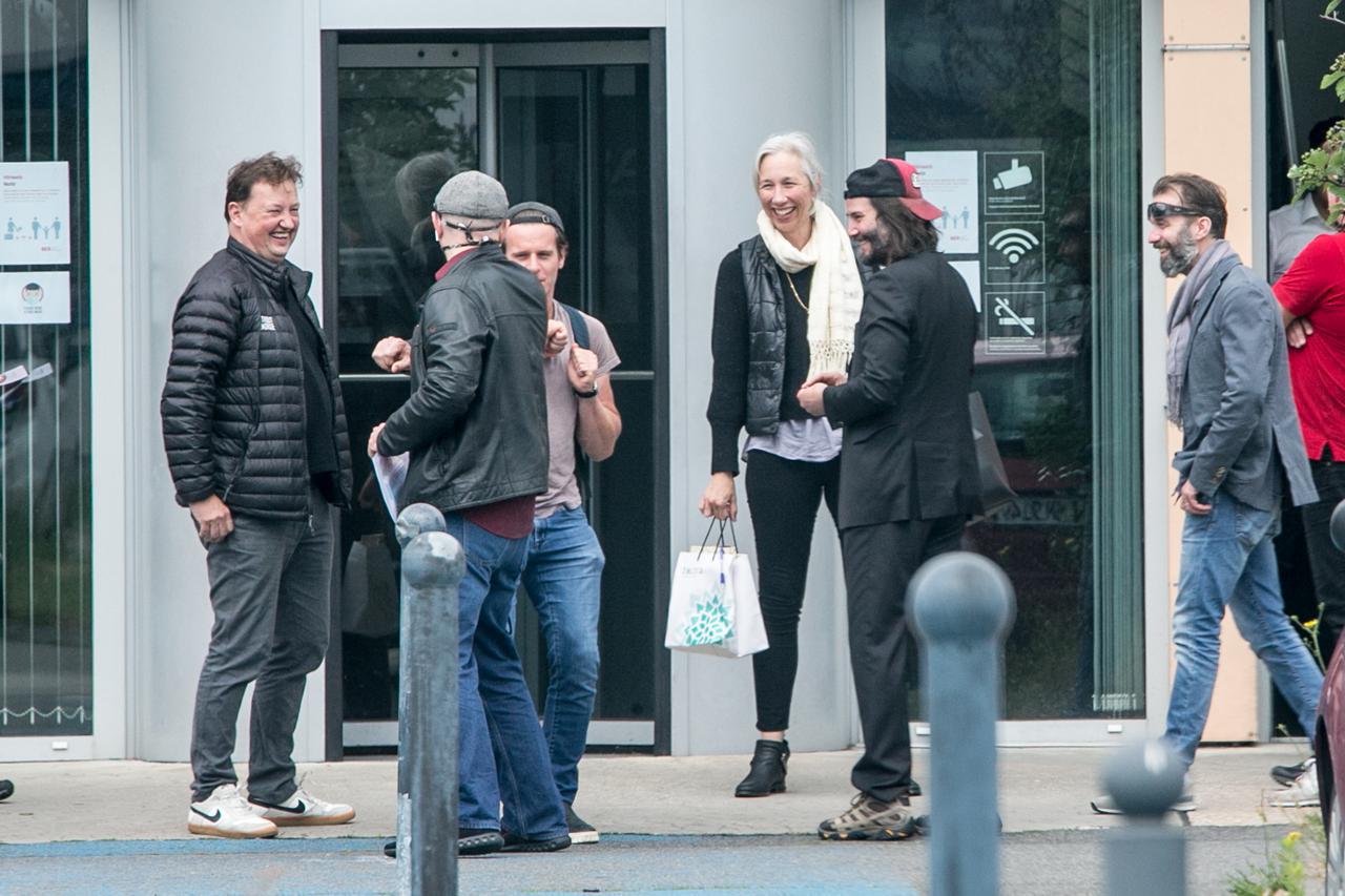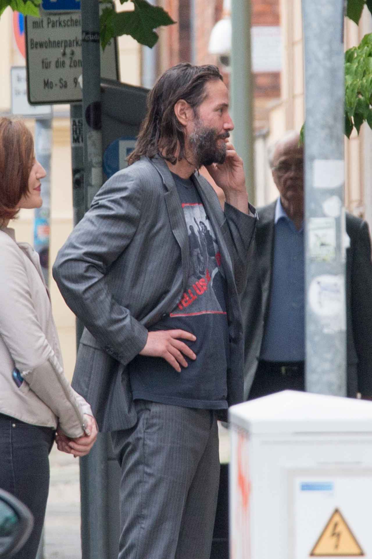撮影開始前に共演者たちとベルリンに降り立ったキアヌ。