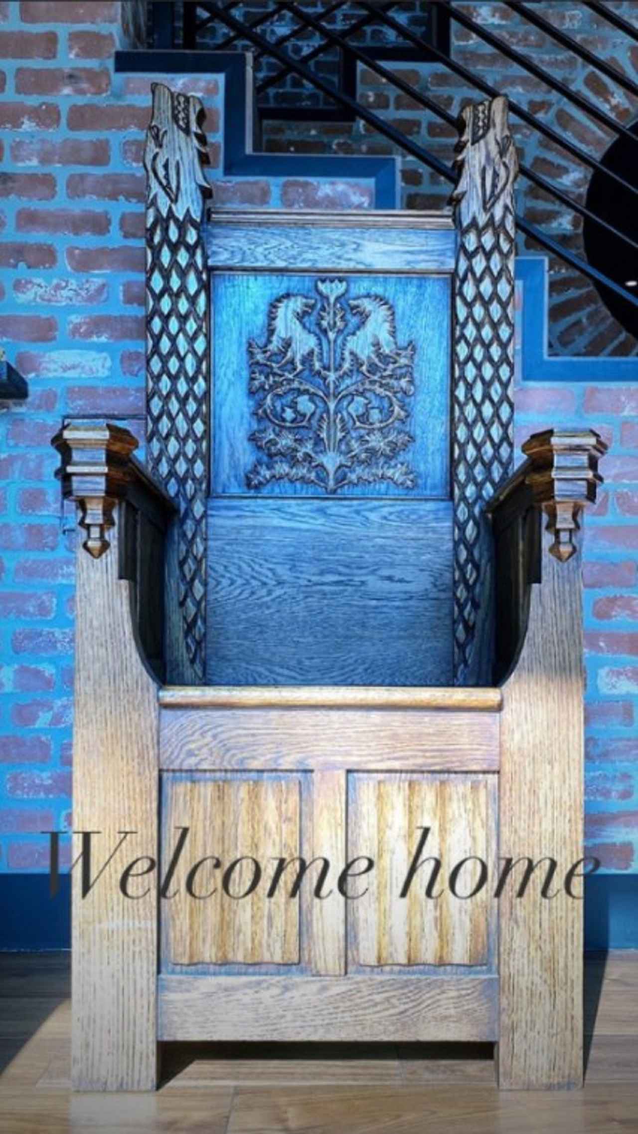 これまでにも、思い出の品として、劇中で身に着けたコルセットや、最終話に小道具として登場した“巻物”を貰ったことを明かしていたソフィーが、「おかえり」というコメントとともにお披露目したのは、スターク家に代々伝わる紋章入りの木彫りの“玉座”だった。