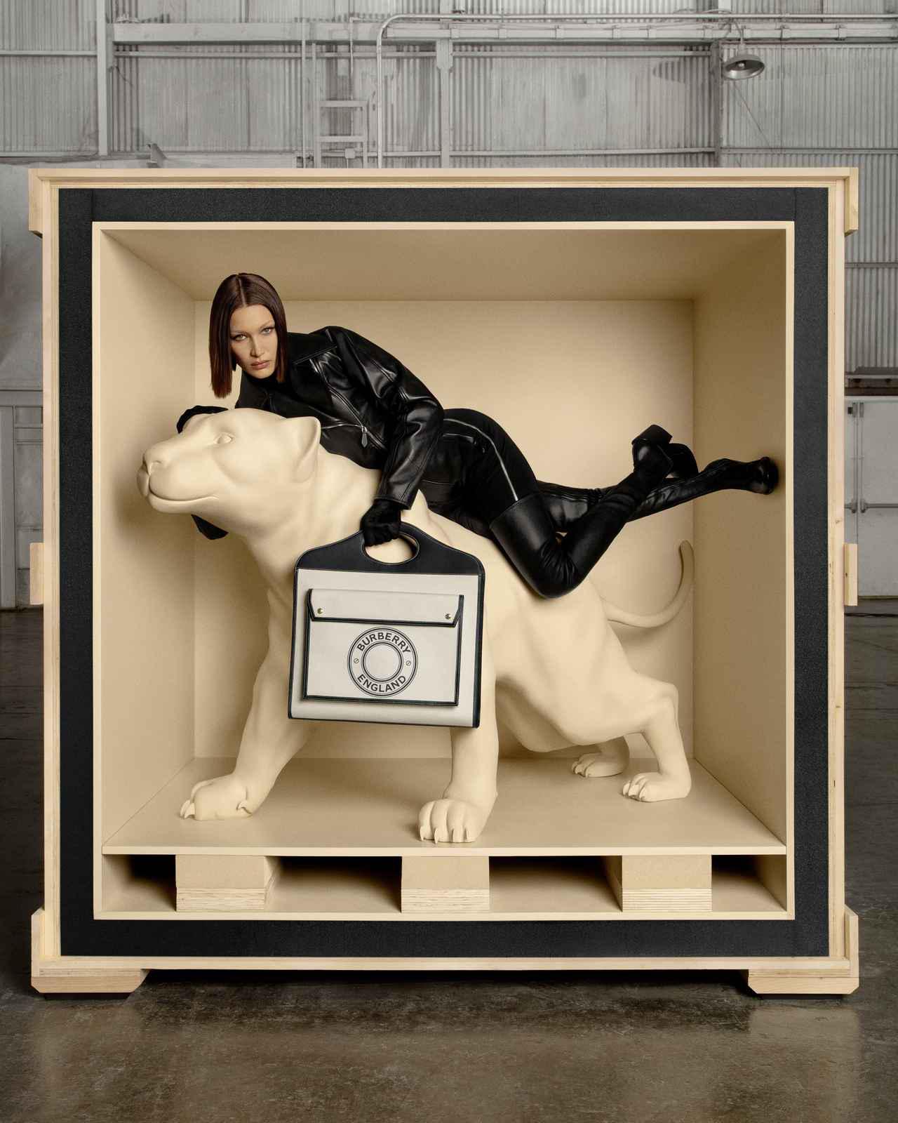 本キャンペーンは、バーバリーで2回目のキャンペーンへの参加となるベラ・ハディッドを再び迎え、撮影はイネス&ヴィノードが手掛けた。リカルドは撮影を振り返り、「私にとって動物とはクリエイティブにおける重要なシグネチャーです。今回はベラ・ハディッドがパンサーに扮し、女性の美しさと力強さを完璧に表現してくれました」と称した。