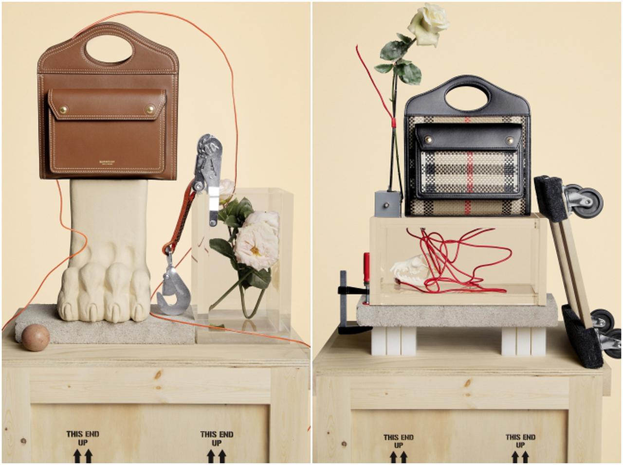 ポケットバッグは多様なサイズとカラーバリエーションで、素材もキャンバスやエンボスレザーがラインナップ。バーバリーのストアとオンラインで発売中。(フロントロウ編集部)