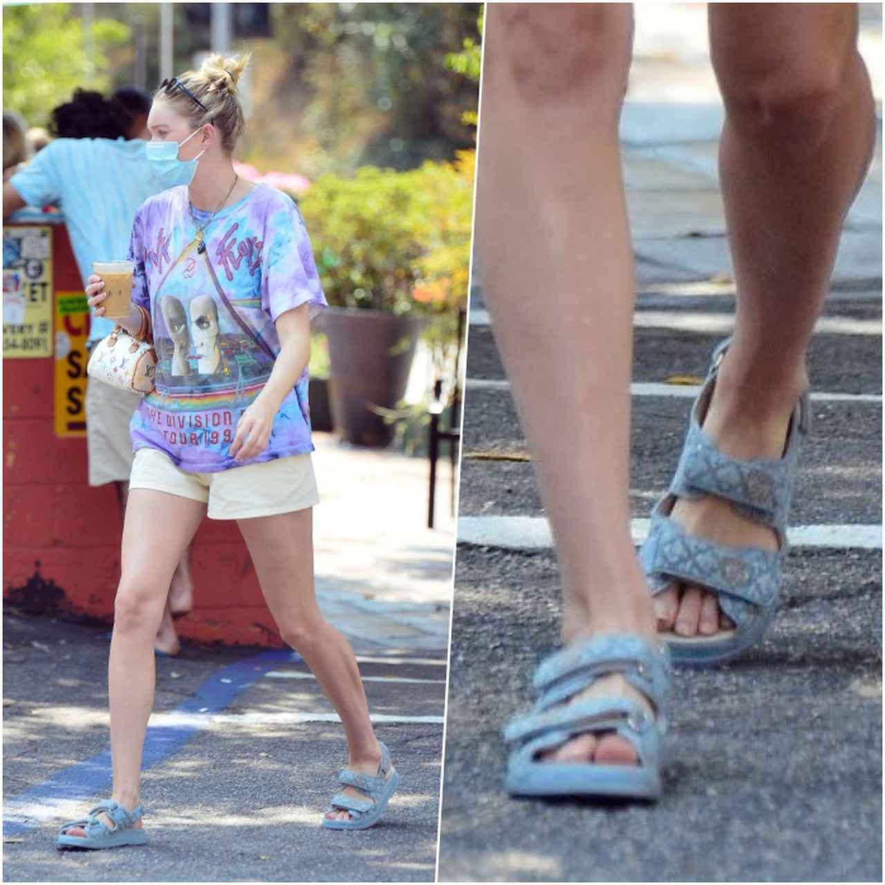 ヴィクトリアズ・シークレットの人気モデルで、ファッションに定評のあるエルサ・ホスクは、ロックバンド、ピンクフロイドのタイダイTシャツにショーパンを合わせたピッピーなスタイルに、足元はChanel(シャネル)のハイテクサンダルを合わせたポップなコーデ。ダメージ加工されたデニムにシャネルのロゴがステッチされた、ラフでスタイリッシュなサンダル。