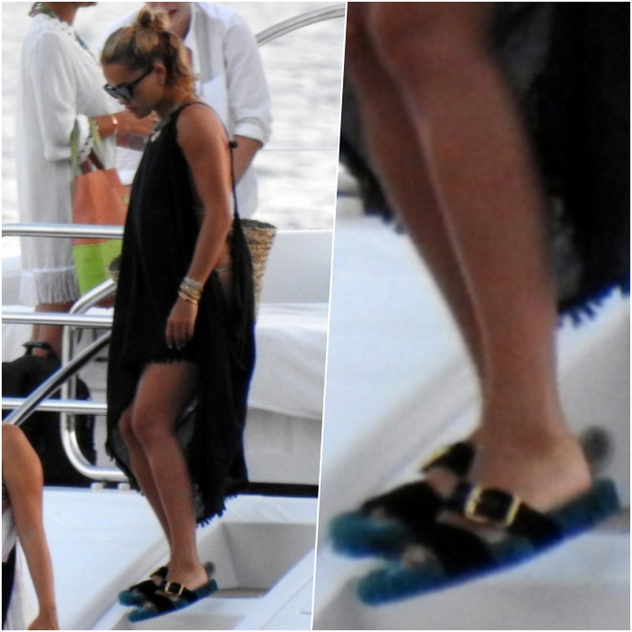 ヨットでバケーションに出かけた人気シンガーのリタ・オラは、ブラックのサマードレスの足元に、Prada(プラダ)のハイテクサンダルを合わせてファッショナブルに仕上げて。