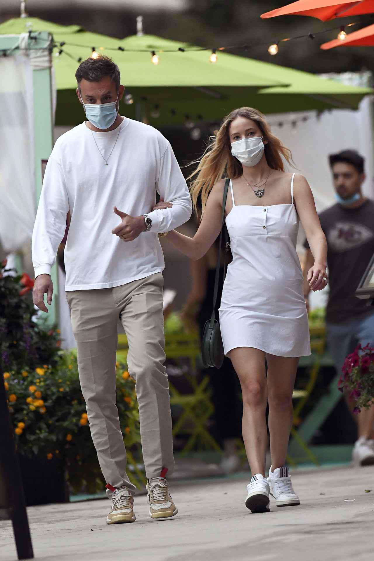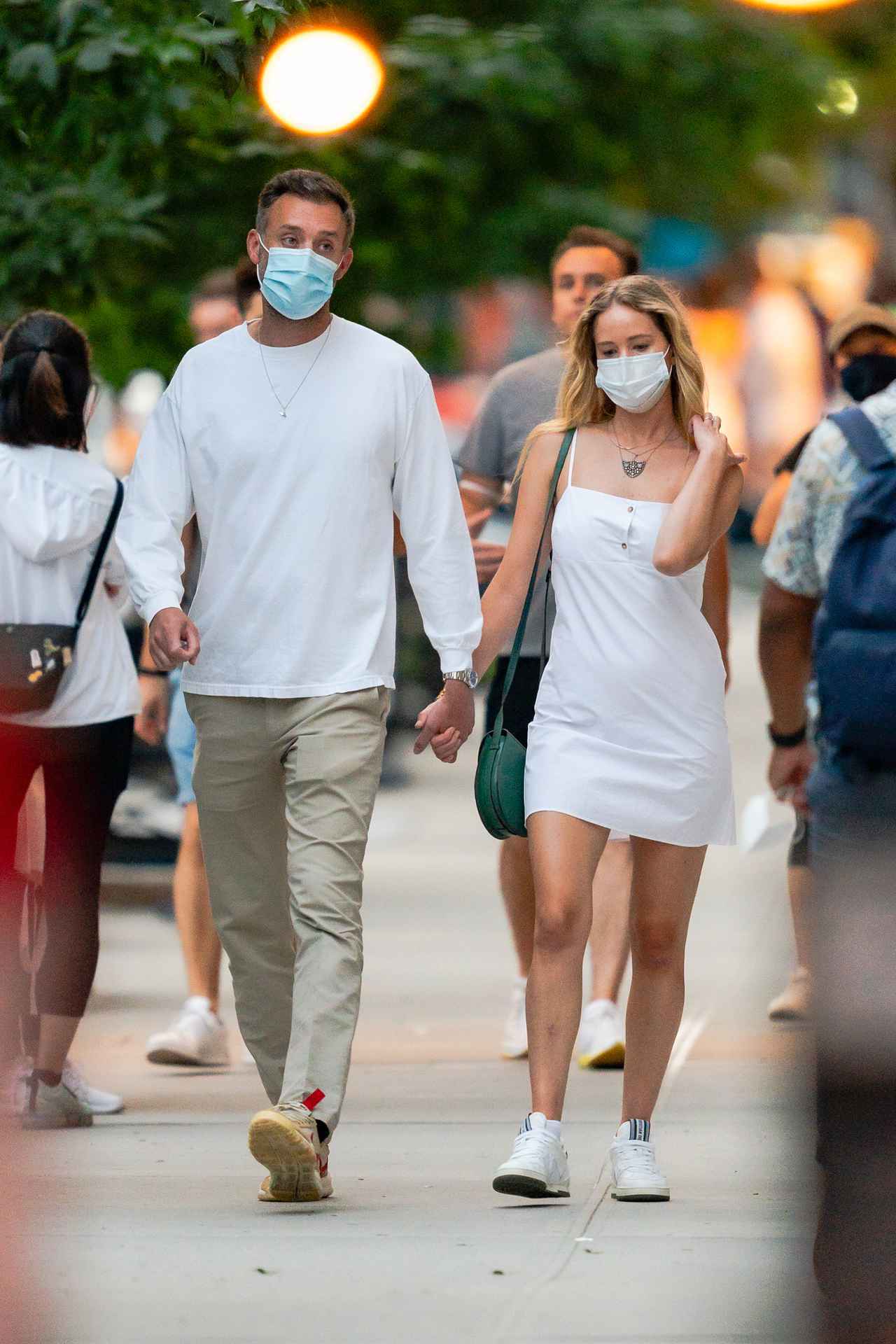 夫のクックと“白”がリンクした、オールホワイトコーデの爽やかなファッションに身を包んだジェニファーは、新型コロナウイルス感染予防のためのマスクも白で統一。手をつないだり、腕を組んだり、もうじき結婚1周年を迎えようとしているが相変わらず夫婦関係は良好のよう。