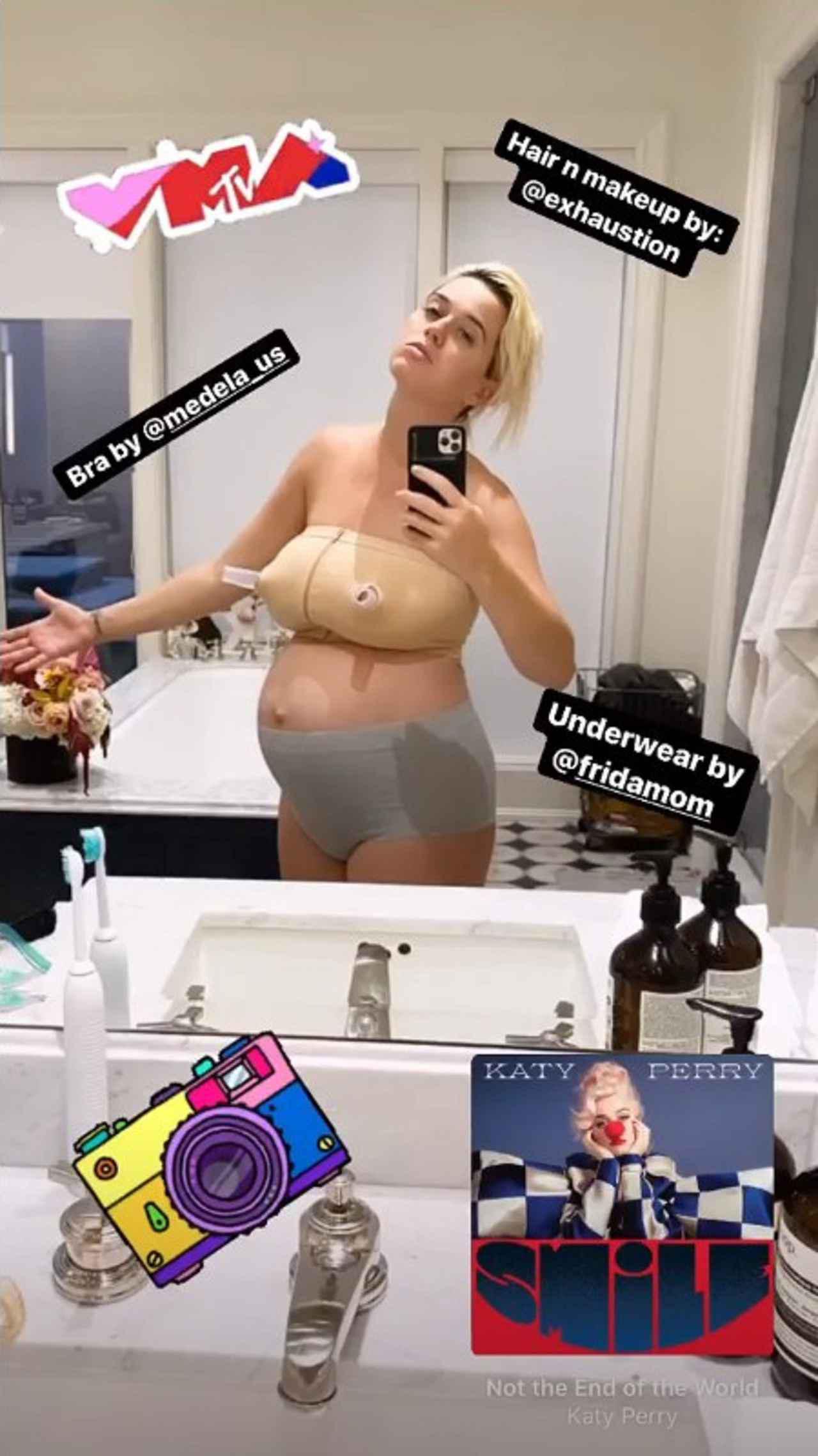 8月 デイジーちゃんを出産して間もなく、8月28日に通算5作目となるアルバム『スマイル(SMILE)』をリリース。さらに、日本時間の8月31日にMTVビデオ・ミュージック・アワードが開催された際には、搾乳用のブラに産褥ショーツという「マタニティ下着」をレッドカーペット用の衣装に見立てた鏡越しのセルフィーを公開。元気な姿をファンにお披露目した。