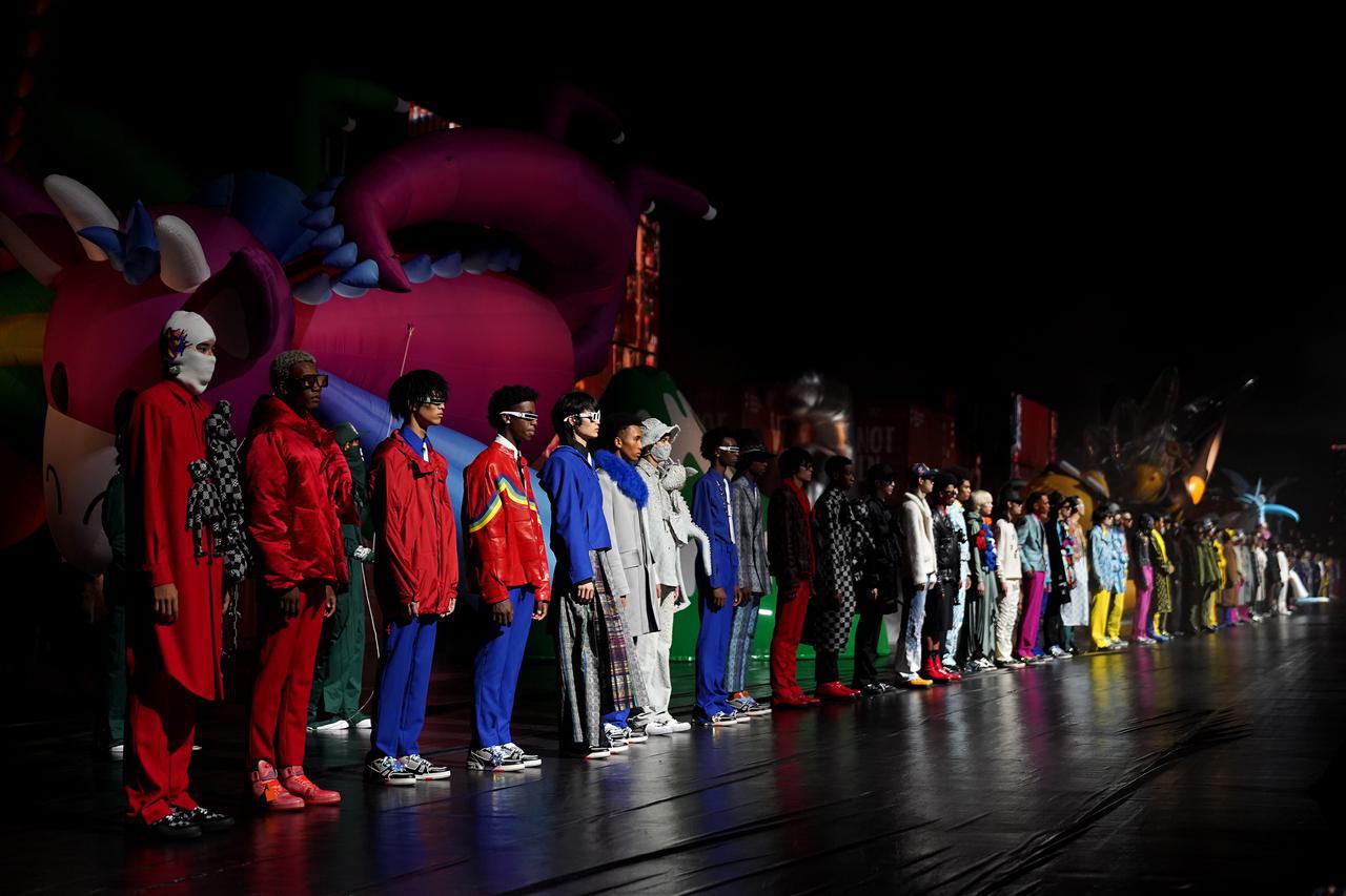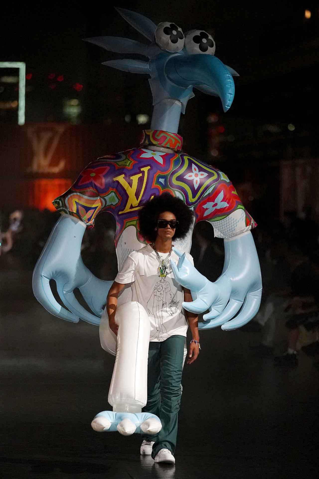 東京のショー会場となった東京国際クルーズターミナルには、コンテナから飛び出した「ズームとその仲間たち」の巨大バルーンが横たわった遊び心溢れるランウェイが登場し、新作119体、日本人アーティストNIGOとのコラボレーション「ルイ·ヴィトン LV スクエアードコレクション」から6体の合計125ルックをお披露目。