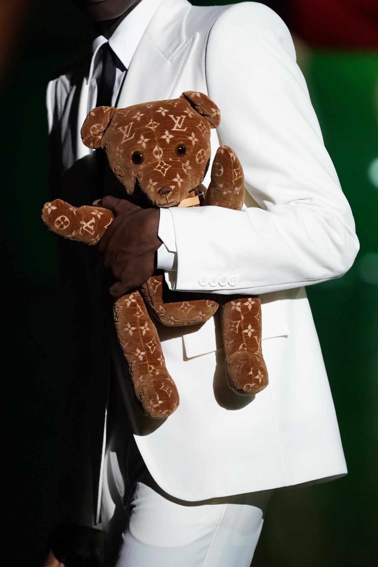 今回のコレクションでは、過去のアーカイブから用いられたものもあり、事前に告知していたものが。それは、当時のルイ・ヴィトンのデザイナーであるマーク・ジェイコブスが発表した、2005年春夏コレクションに登場したモノグラムがデザインされたテディベア。