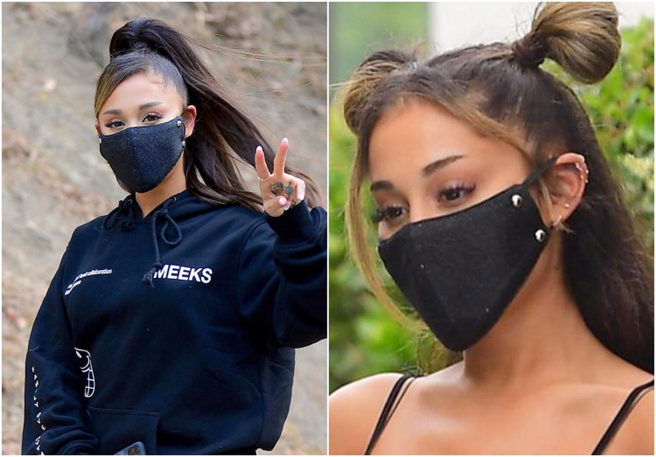 キラキラと輝きを放つグリッターマスクも注目。シンガーのアリアナ・グランデが愛用しているマスクは、遠目からだと分かりにくいけれど、日頃からステージ衣装のデザインなどを依頼しているデザイナーのマイケル・ノーが製作しているカスタムマスク。