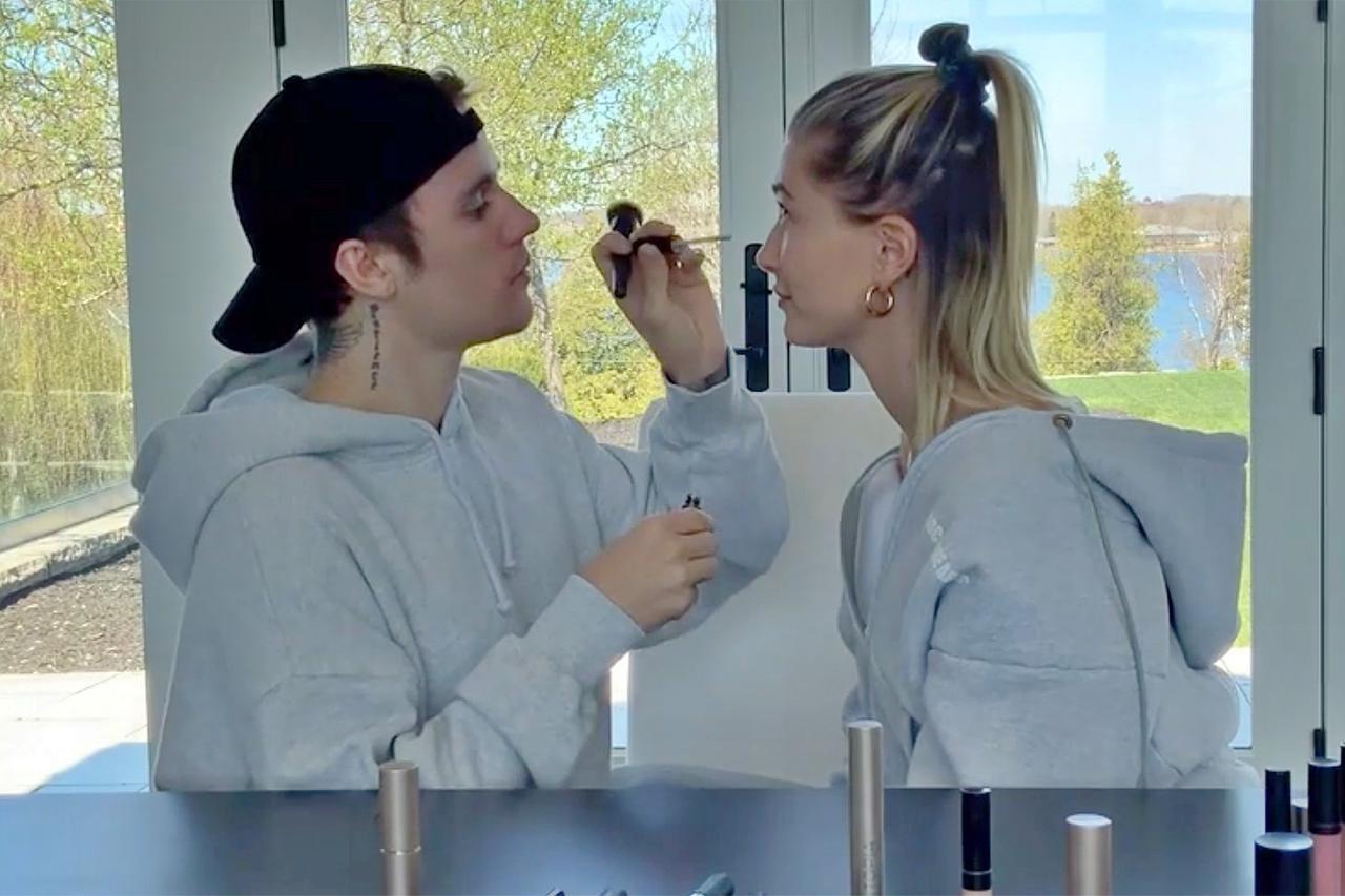 Facebook Watchで配信されているリアリティ番組『The Biebers on Watch(ザ・ビーバーズ・オン・ウォッチ)』で、ジャスティンにメイクをしてもらうヘイリー。