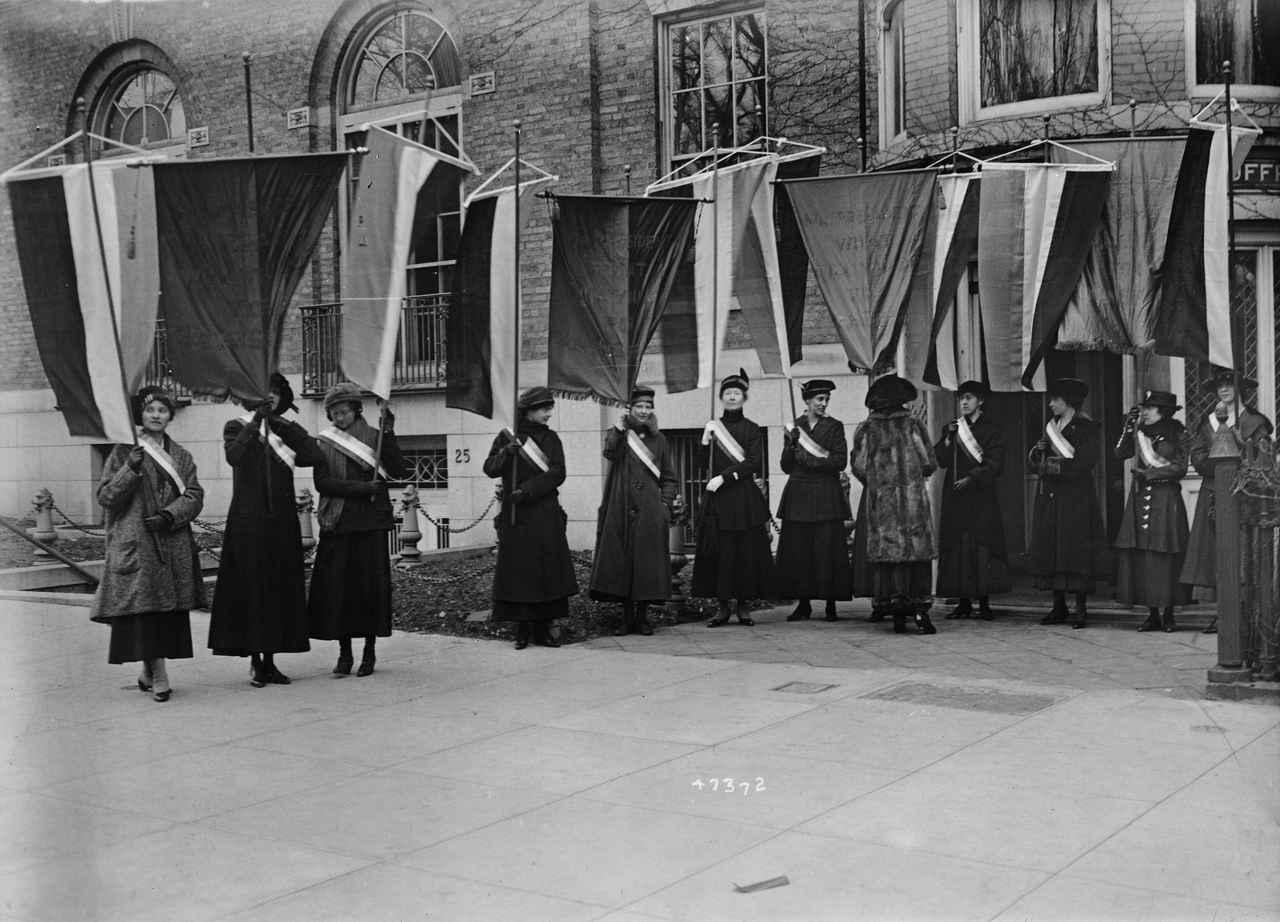 第一次世界大戦時代にアメリカ合衆国大統領だったウッドロウ・ウィルソンは、「世界は民主主義にとって安全にならなければいけない」と国民に呼びかけたけれど、それに対してNWP(全米女性党)は、「アメリカの2,000万人の女性達は、いまだに自己統治を持っていない」と、“民主”に女性が含まれていないことを批判していた。アメリカで女性が投票権を獲得したのは、1920年のこと。