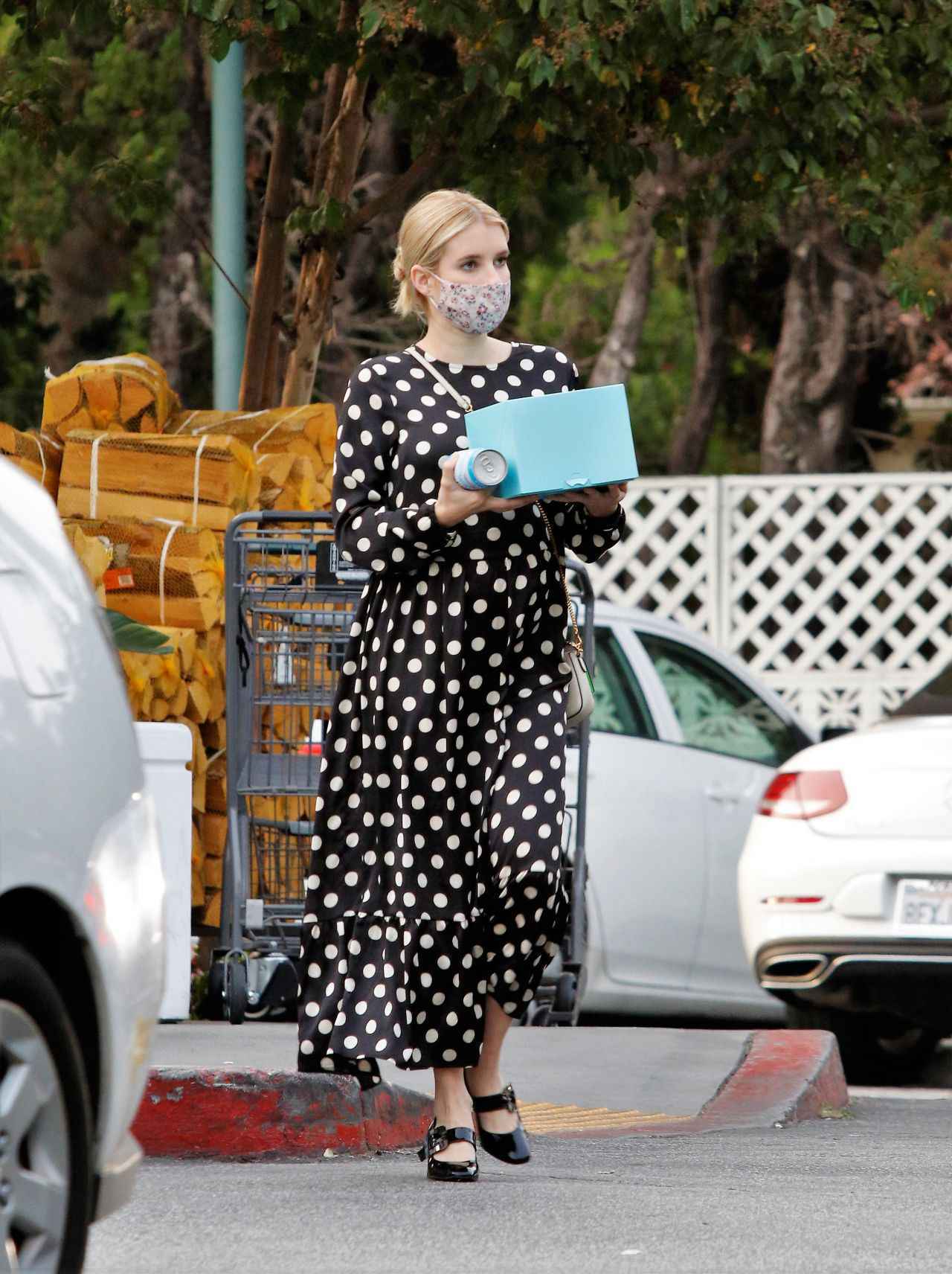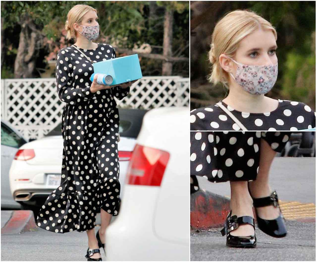 人気ドラマ『アメリカン・ホラー・ストーリー』のエマ・ロバーツが、プライベートでH&Mのワンピースを愛用する姿をキャッチ。ガーリーなアイテムを好むエマは、コロナ対策としてフローラルプリントのマスクを着用し、エマの住むロサンゼルスでのショッピングへお出かけ。マスクはエマが普段から愛用するブランドLottie Annのもの。
