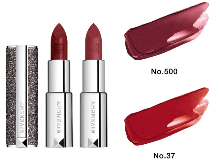 ルージュ・ジバンシイの限定色「No.500 エニグマティック・レッド」は、マザー・オブ・パール※2が繊細に煌めくブラウンがかったエレガントなダーク・レッドで。ルージュ・ジバンシイ・ベルベットの定番色「No.37 ルージュ・グレネ」は、鮮やかでありながら落ち着いたダーク・レッドで、深紅のバラのようなシックな装いを演出。