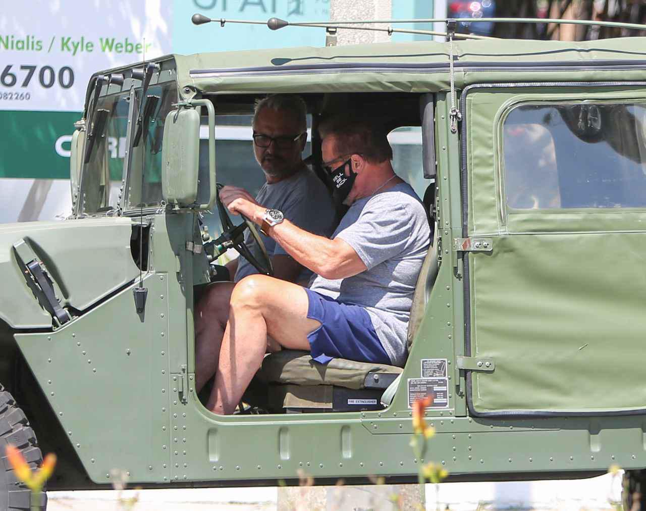 元カリフォルニア州知事で俳優のアーノルド・シュワルツェネッガーが友人を乗せてドライブしている姿をキャッチ。その時乗っていたクルマが、さすがとしか言い様がない。(フロントロウ編集部)