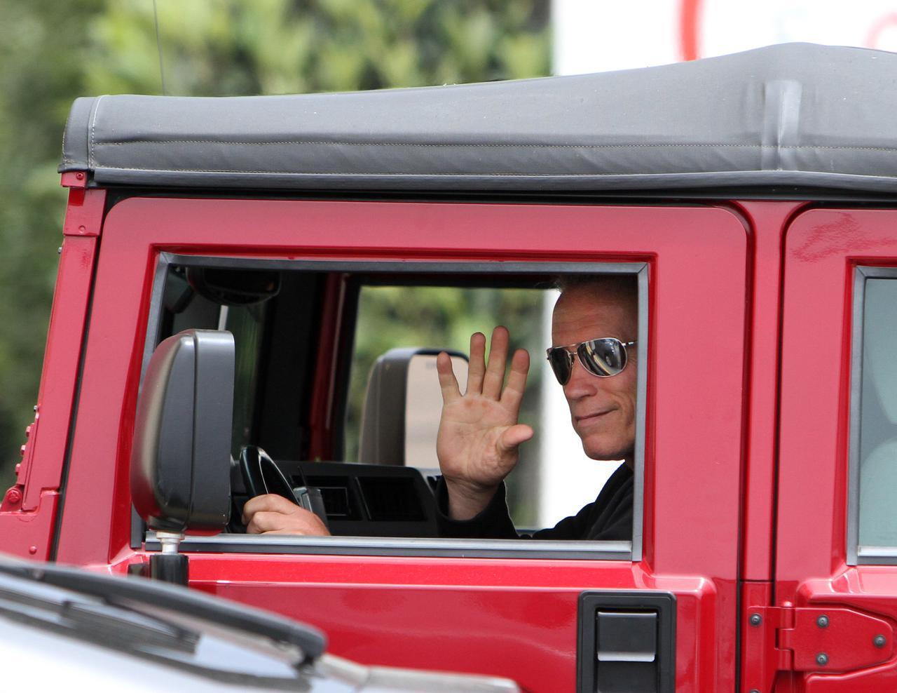 元カリフォルニア州知事で映画『ターミネーター』シリーズなどに出演している大御所俳優のアーノルド・シュワルツェネッガーは、その鍛え抜かれた体をキープするために日々トレーニングに勤しんでいる。トレーニングの合間には、愛車でドライブをすることも多く、この日も晴天のロサンゼルスで友人とドライブ。クルマの近くで待っていたパパラッチにも笑顔を見せかなり上機嫌なよう。