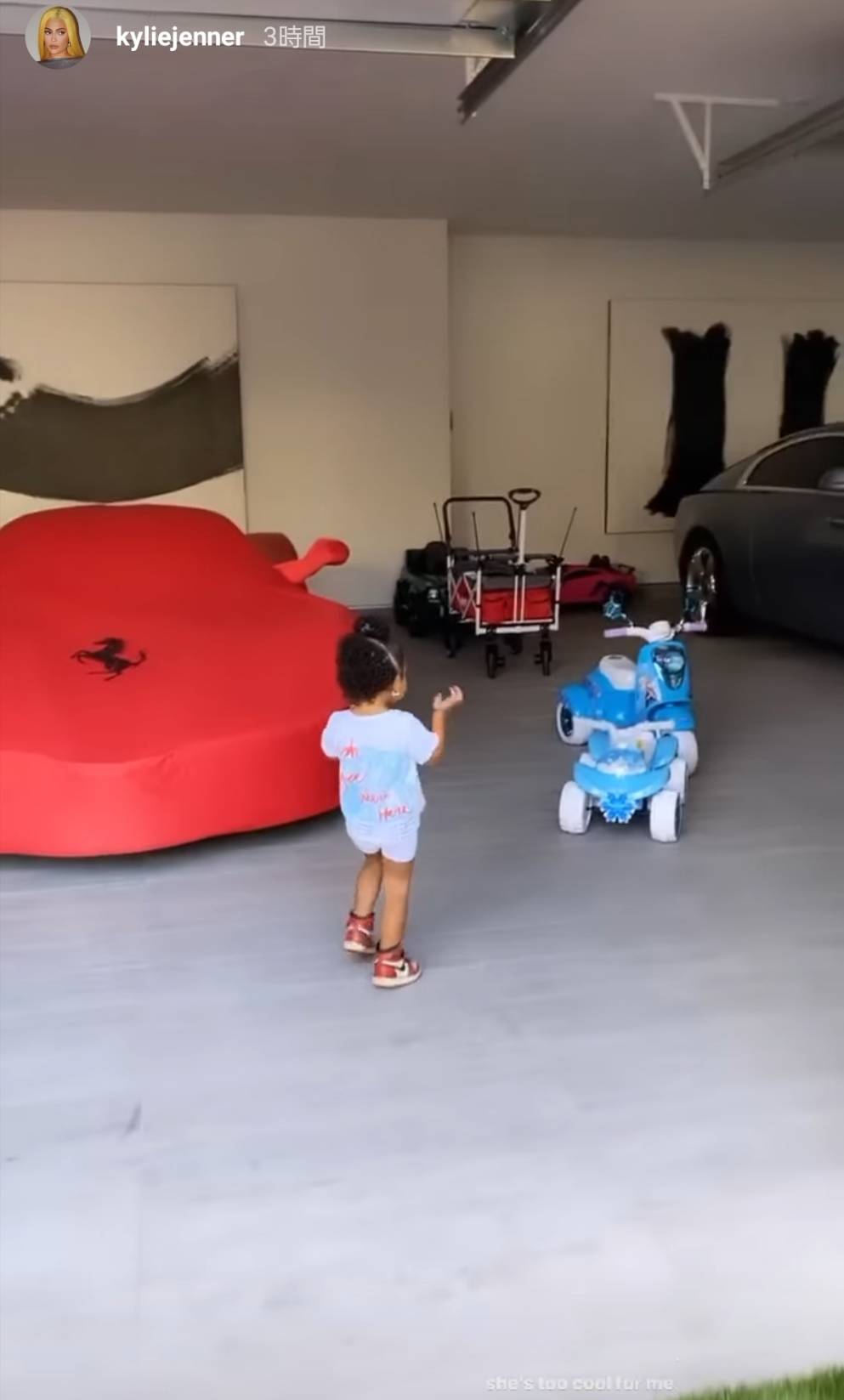 億単位のクルマが眠る場所でも、子供のおもちゃを置きママっぷりを発揮したカイリーだった。