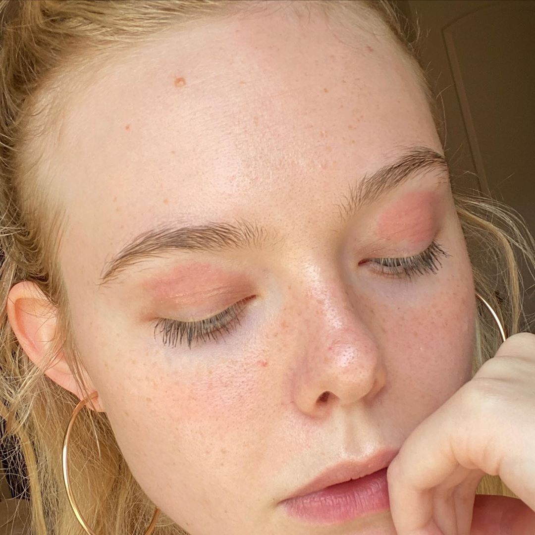 アトピー性皮膚炎による湿疹を隠すことなく、ありのままの素顔をアップしたエル・ファニングのセルフィーに称賛が集まっている。(フロントロウ編集部)