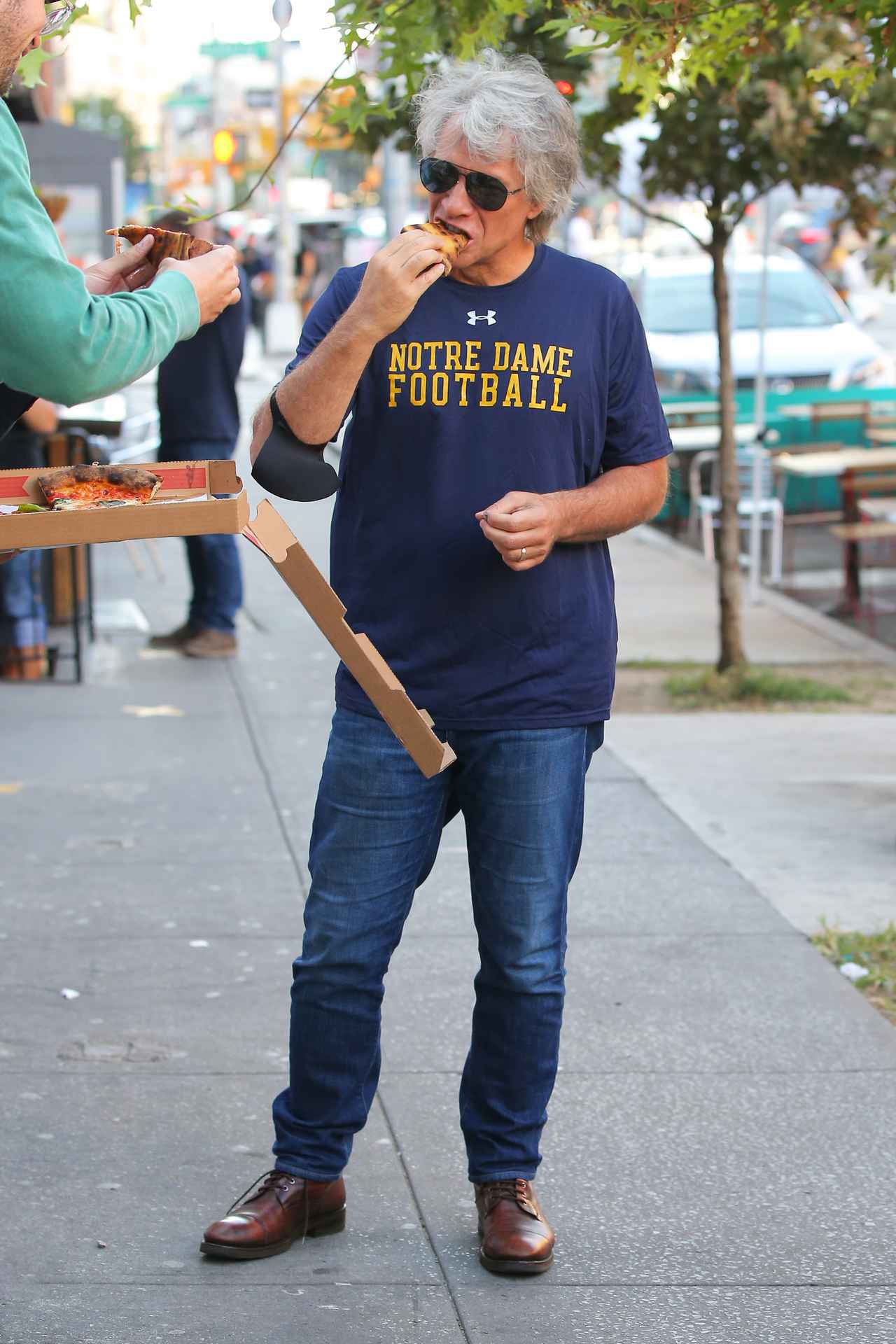 アメリカのロックバンド、ボン・ジョヴィのジョン・ボン・ジョヴィが、ニューヨークの町中で立ちながらピザを頬張っている姿をキャッチした。(フロントロウ)