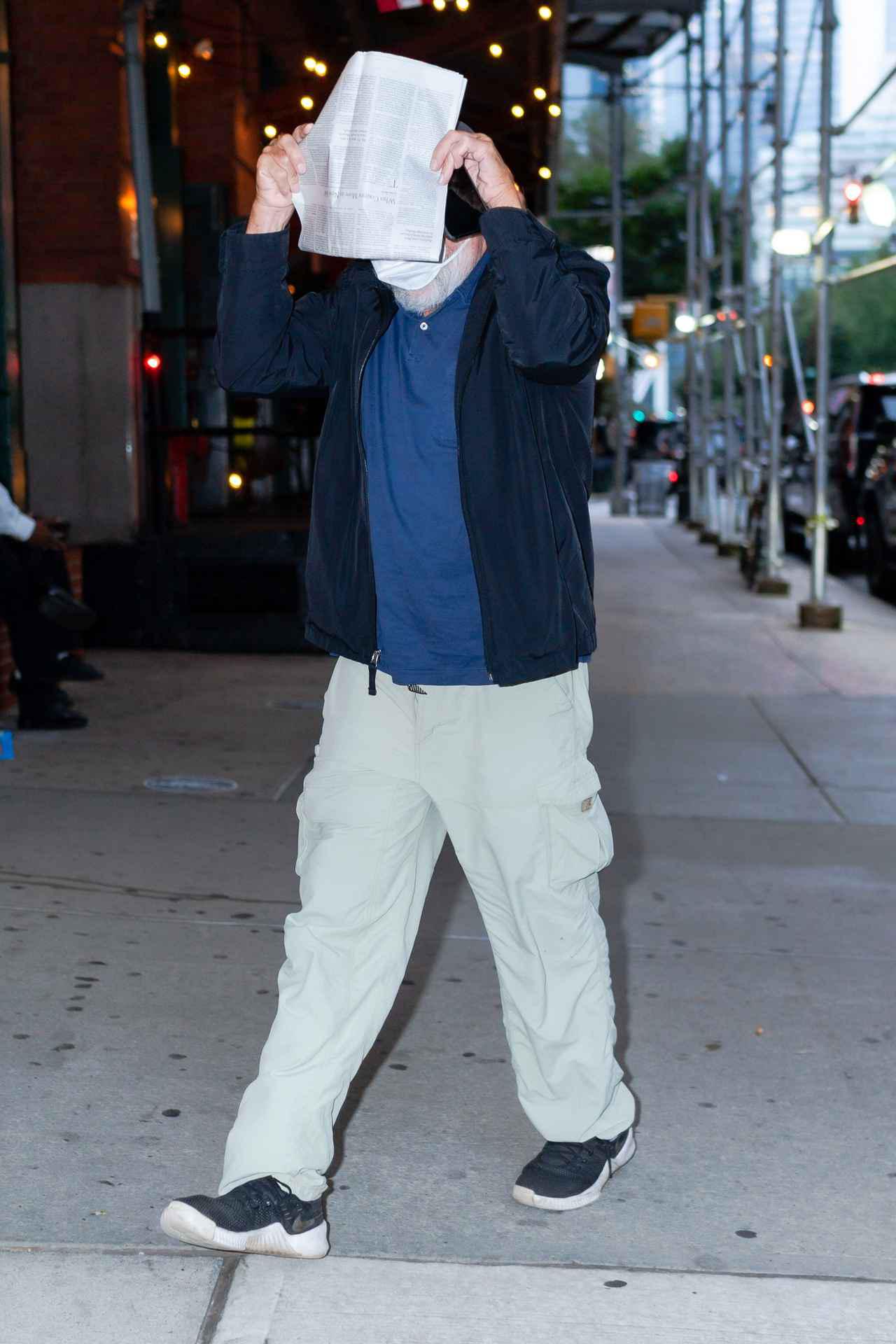 正面から見ても、横から見ても、1ミリも隙なし。あまりにも完ぺきにガードしすぎて、もはや写真に写る人物が本当にロバートなのかどうかもわからないような状態だが、新聞を“変装の道具にする”というあっぱれな使い方で、まったく素顔を見せることなく、自身がオーナーのグリニッチ・ホテルへと入っていった。