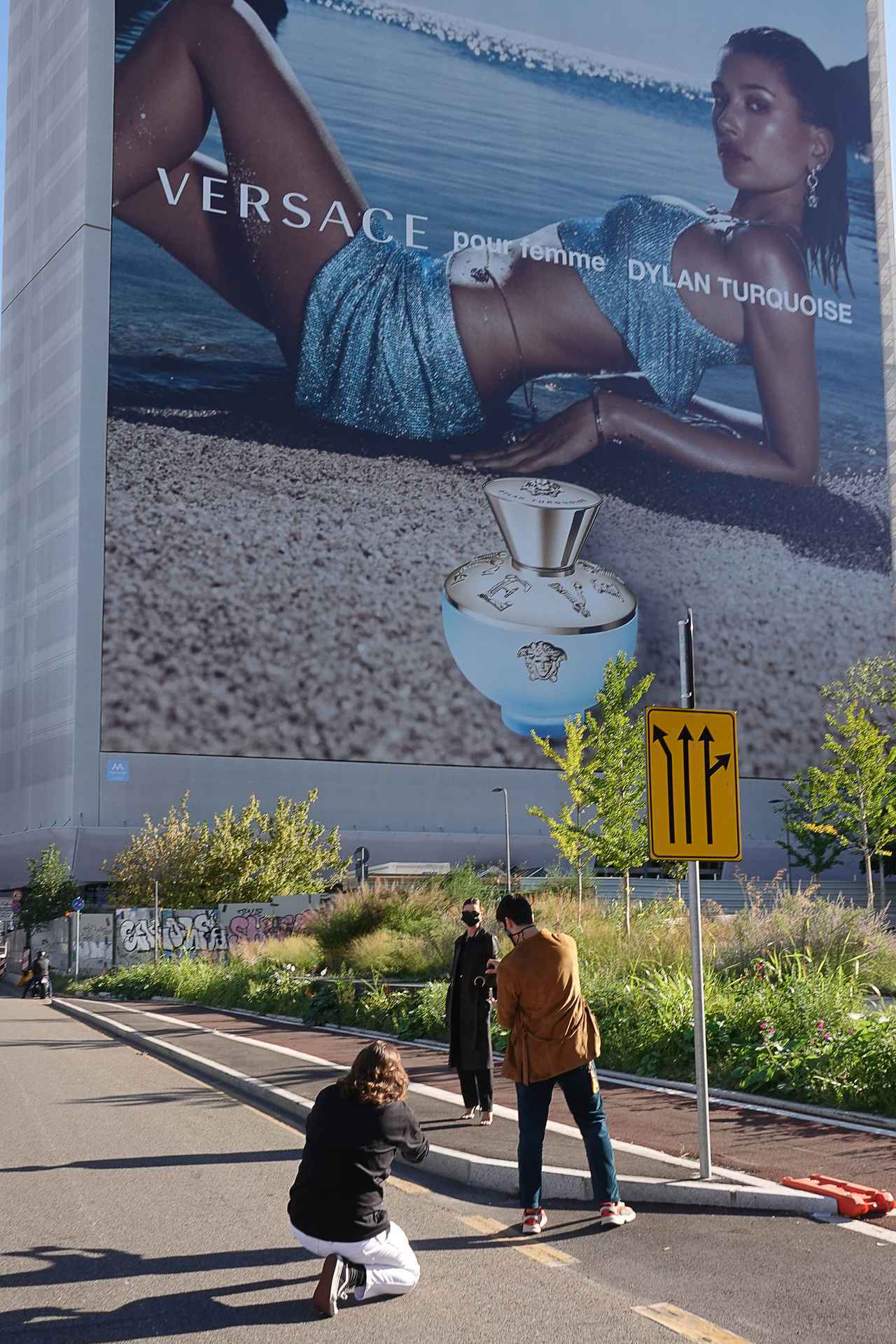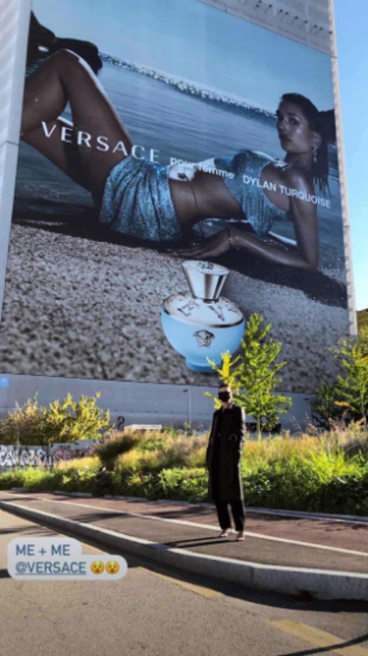 その“お目当のもの”とは、自身が広告等を務めるラグジュアリーブランド「ヴェルサーチェ(Versace)」の香水ディラン ターコイズ(Dylan Turquoise)の巨大広告。