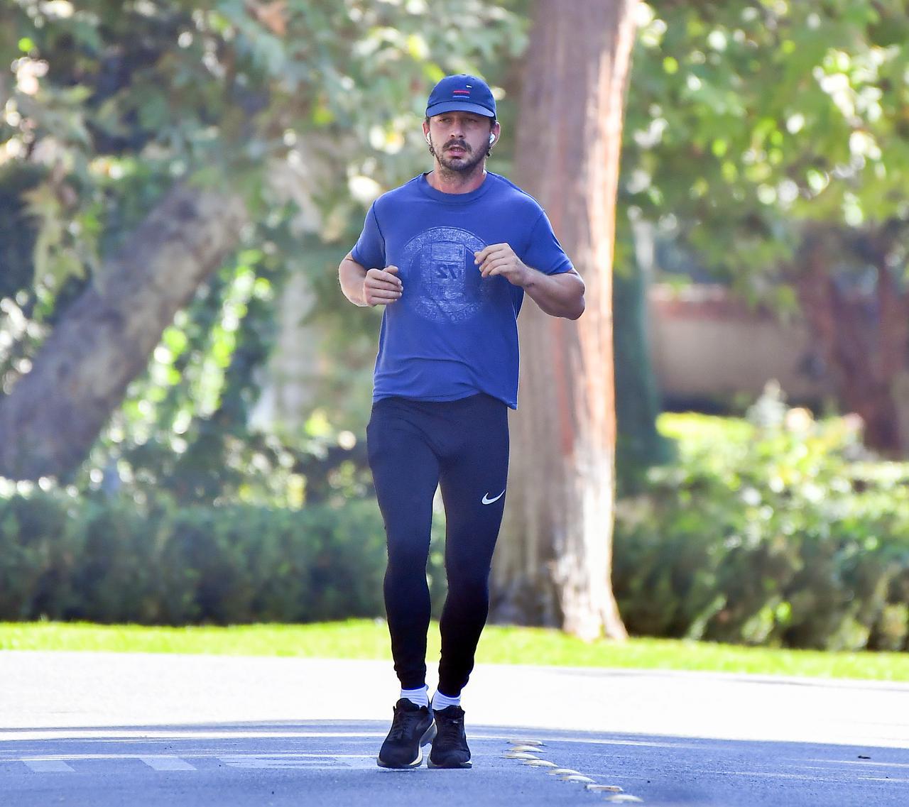 現地時間10月1日、逮捕報道が出た直後にロサンゼルス近郊のパサデナでジョギングをしているところをパパラッチされたシャイア・ラブーフ。