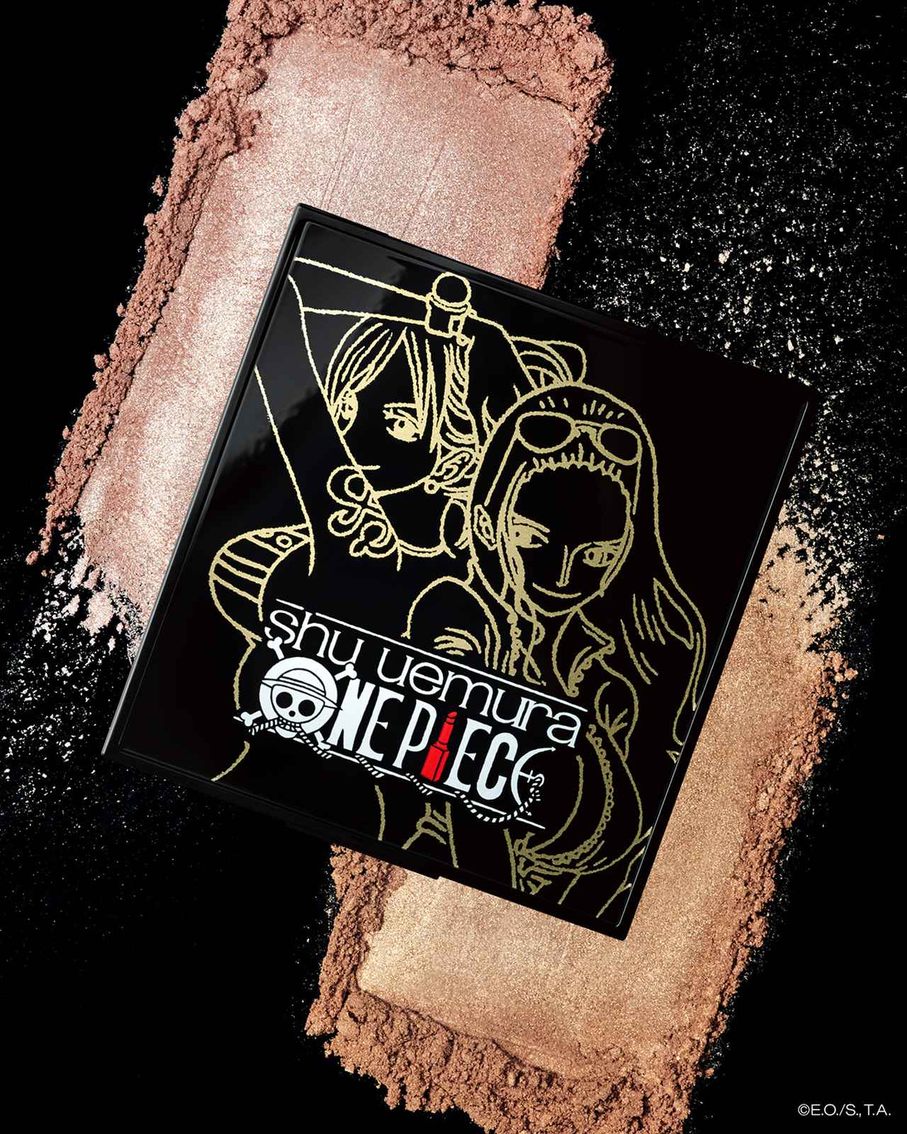 シルクのようになめらかで軽やかな使い心地の限定ハイライトパウダー。麦わらの一味の女性クルーのナミとロビンが描かれた、パールのように光を放つ「ゴールド」と太陽の光を浴びた「ピーチカラー」の2色が登場。