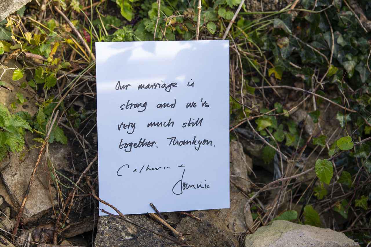 また、夫妻が報道陣に手渡した直筆メッセージには、「私たちの夫婦関係はいたって良好であり、今も固い絆で結ばれています。ありがとう。キャサリン&ドミニクより」と書かれていた。