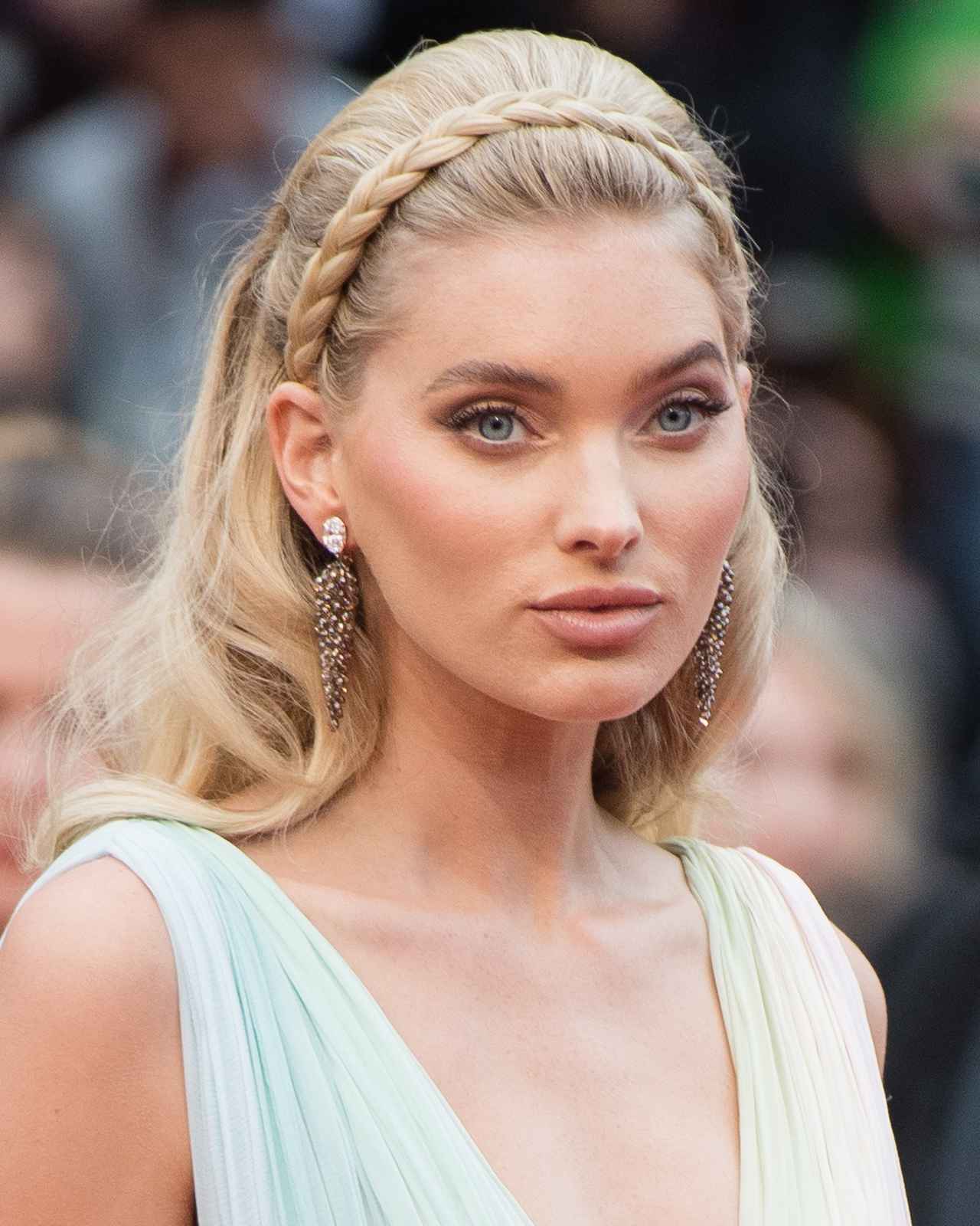 モデルのエルザ・ホスクは、後ろ髪の一部を三つ編みし、カチューシャの位置に沿って巻きつけてロマンチックな雰囲気のヘアアレンジに。頭頂部にボリュームを持たせることで、より上品な印象に仕上げている。