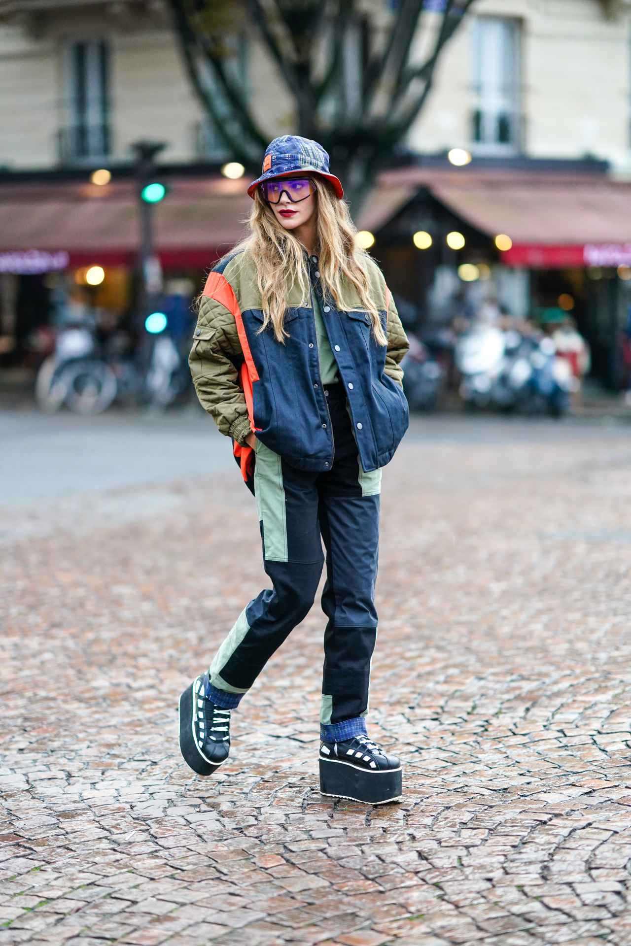 人気ファッションブロガーのカーラ・ベリーは、パッチワークデザインのジャケットに同じくパッチワークのトラウザーを合わせた旬なストリートスタイルを披露。ハットまでパッチワークのもので統一した上級者な着こなし。