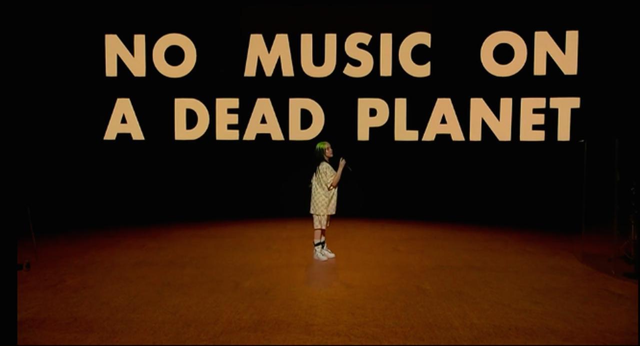 今までバラードでその美声を響かせてきたビリーだけれど、次にお披露目されたのは、「All The Good Girls Go To Hell」。天国や神、聖ペトロなど、宗教にリンクするワードが使われた同曲は、じつは、地球温暖化についての曲。そのため、バックの映像には、地球温暖化が原因で火災が起こっている様子や、水面が上昇している様子など、地球が破壊されていく姿が映し出され地球温暖化についてのメッセージが投げかけられた。