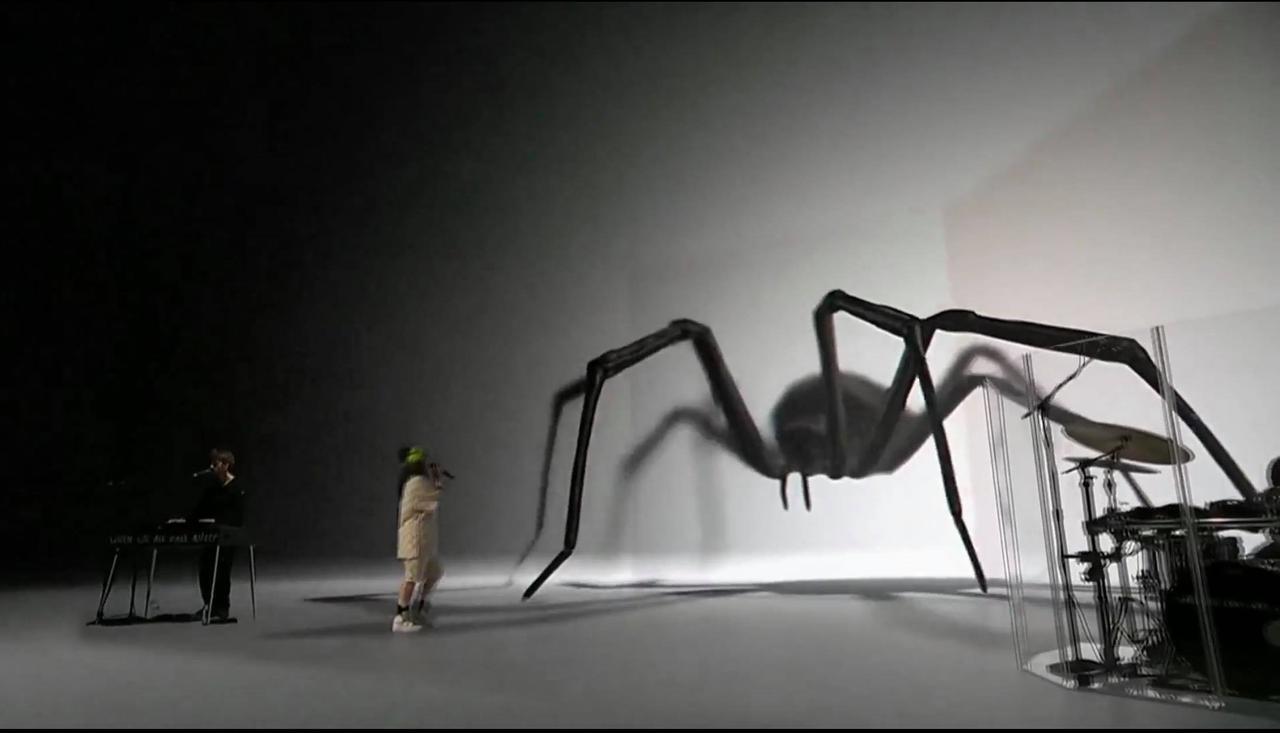 そしてライブの定刻をすぎるとカウントダウンがはじまり、「みんな調子はどう?」と全身グッチ(Gucci)の衣装を着たビリーが登場し、「Bury A Friend(ベリー・ア・フレンド)」で幕開け。そして「ハーイ、みんな!ライブだよライブ!家にいるみんなこんにちは、ビリーだよ」とファンに挨拶をすると、お次は「You Should See Me In a Crown」を披露。ここでは、MVに登場したようなクモが巨大化して登場。ここから最先端のXR技術を用いたバックモニターが活用され、世界中のファンがビリーの世界に没頭した。