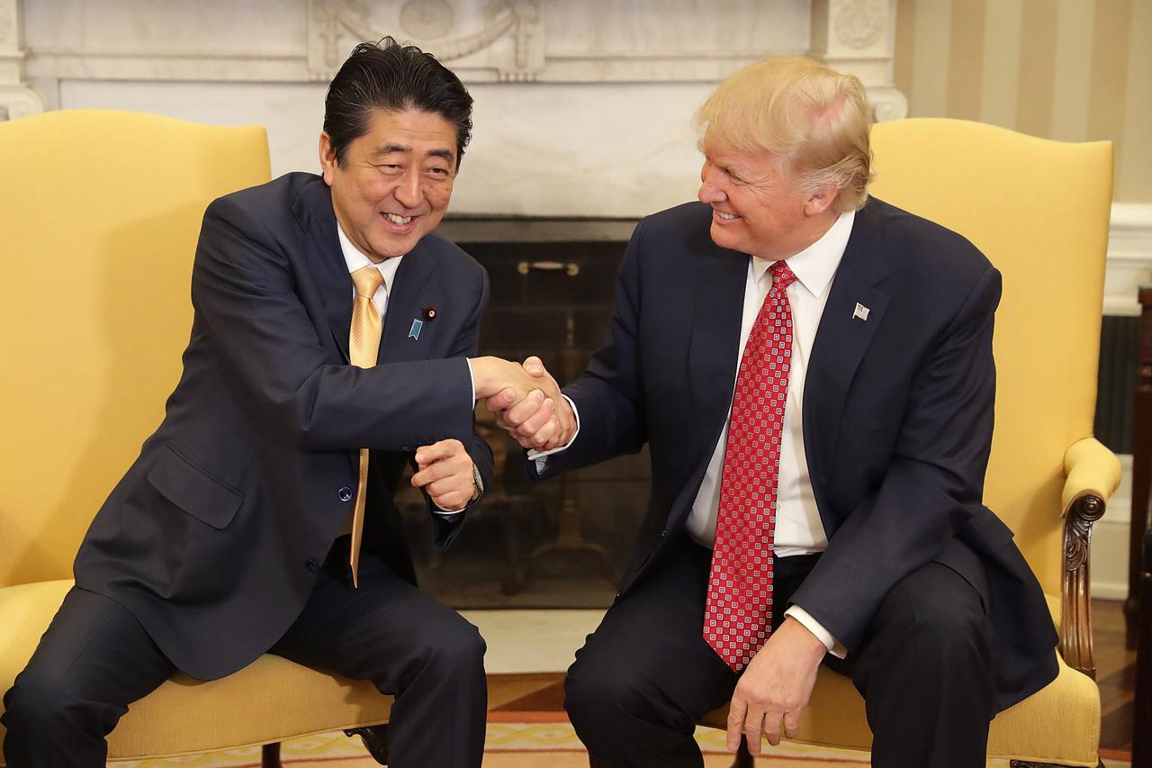 2017年2月、ホワイトハウスで面会した安倍前首相とトランプ大統領。