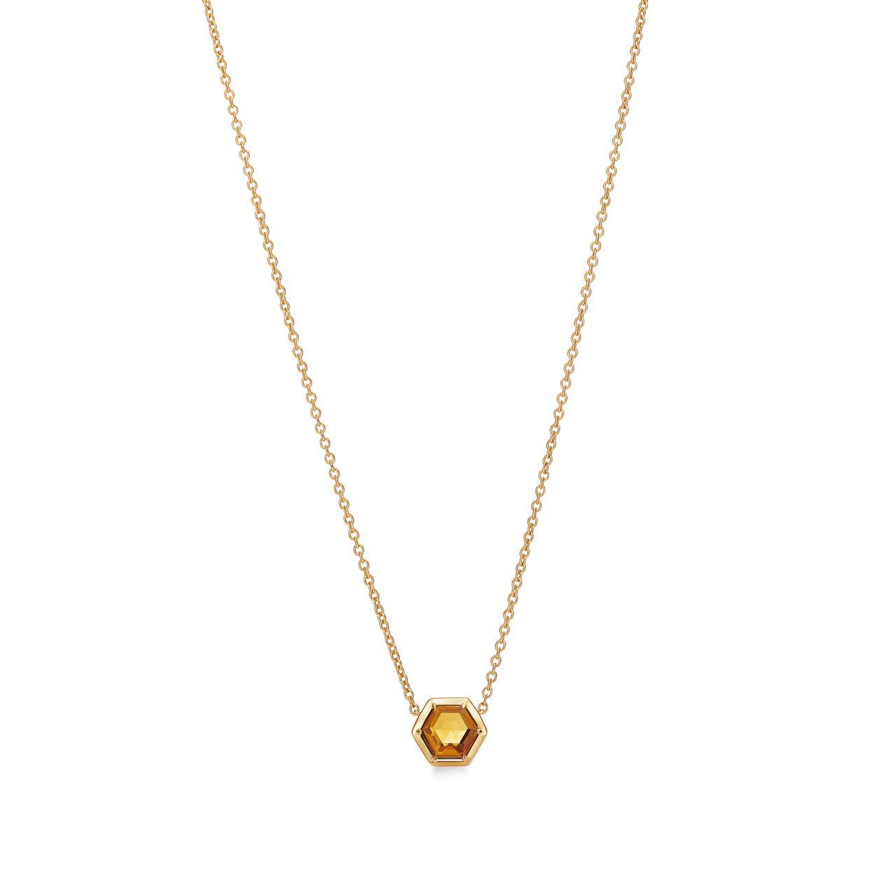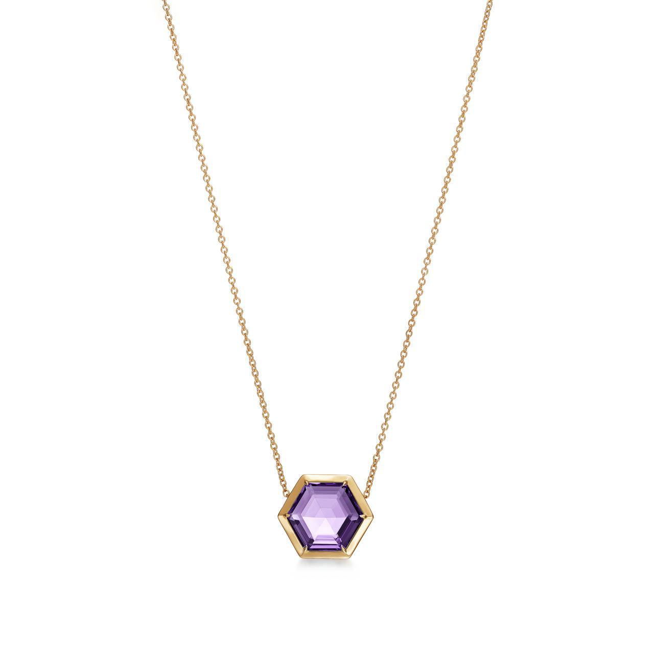 重ねづけができるペンダント、リング、イヤリングは、「パロマ スタジオ」の既存のリングに見られる幾何学的形状をもとにデザインされており、カスタムカットの六角形とグラフィックなバケットバーが特徴的。