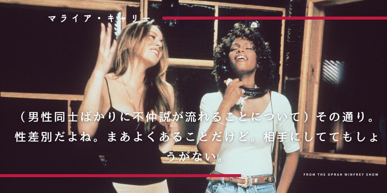 あまり接点がなさそうに見えて、アリアナ・グランデやケイティ・ペリーといった今の時代のフェミニスト歌姫の延長戦上には、音楽界で女性アーティストの存在感を強く示したそんなマライアの行動があった。