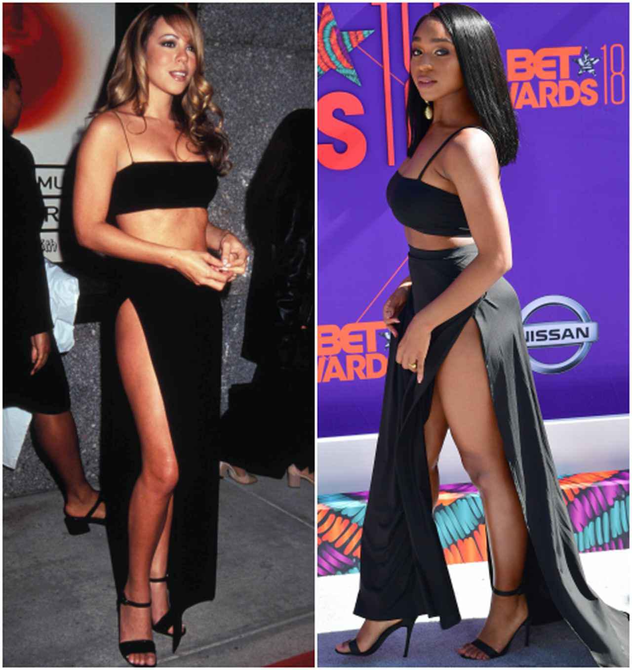 自身も、「恋人たちのクリスマス」でのタイトなサンタスーツをはじめ、多くのアイコニックなファッションを生み出したマライア。なかでも、1997のMTV VMAで着たハイカットのツーピースはアイコニックなルックとして当時大きく話題になり、2018年のBETアワードではZ世代であるシンガーのノーマニがこのルックを完コピしてマライアをオマージュした。