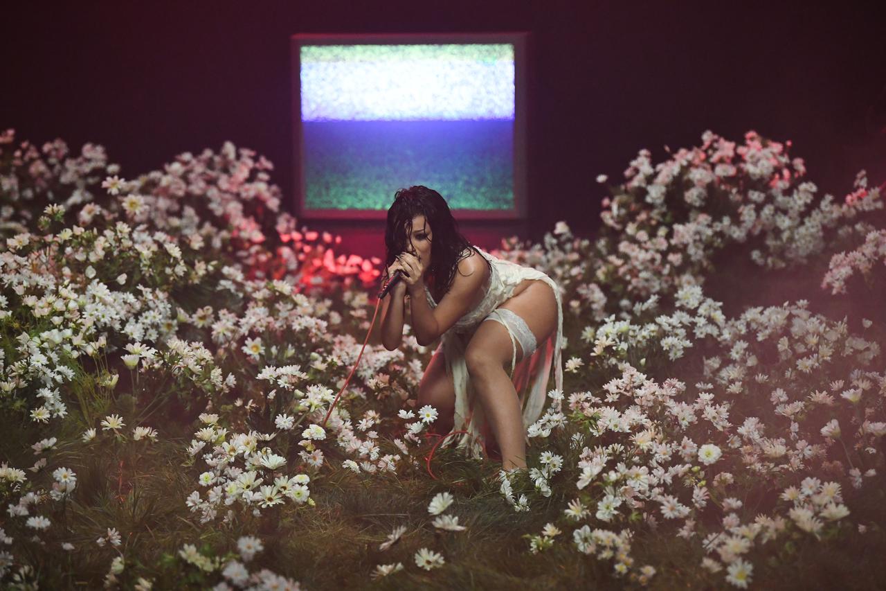 この日の「Say So」のパフォーマンスは、これまでのポップなアレンジとは打って変わって、バンドを引き連れてのロックなアレンジに。加えて、ドージャが白いドレスを着て披露したこのステージは、1998年に公開された日本のホラー映画『リング』をアメリカでリメイクした2002年公開の映画『ザ・リング』にオマージュを捧げたものとなっていて、花畑の中に置かれたテレビの中から、映画に登場するサマラ(※日本版での貞子)に扮したドージャが登場するという演出からパフォーマンスがスタートした。