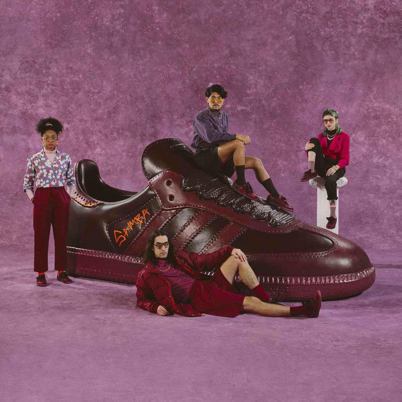 「JONAH HILL SAMBA」は3色展開で、ミネラルグリーン、ノーブルマルーン、テックコッパーがラインナップ。同系色のネオンカラーで刺繍された手書きのテキストなど、センチメンタルなディテールが隠され、コラボレーションの特徴であるファットシューレースも付属。