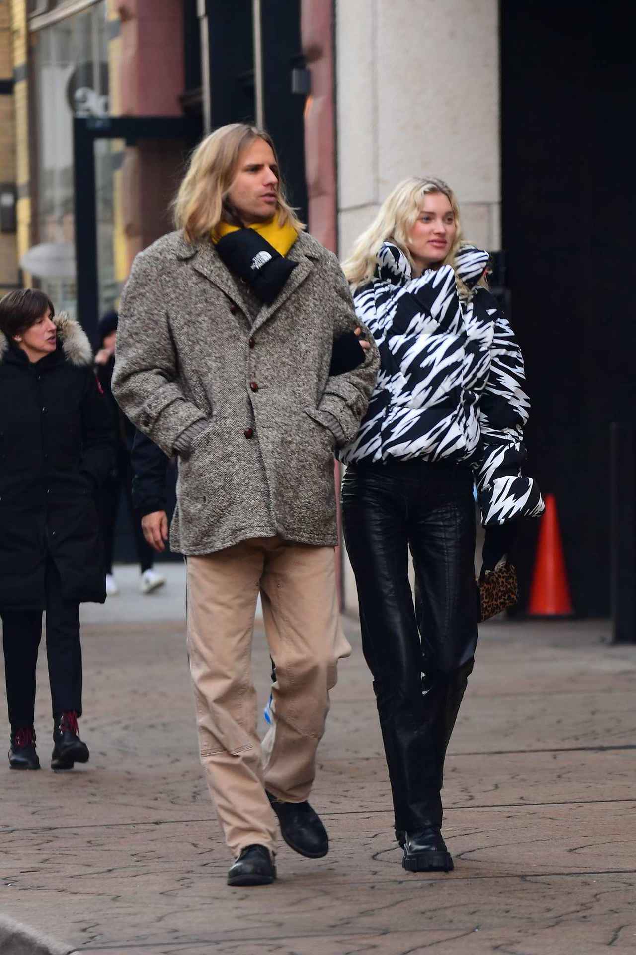 人気モデルのエルザ・ホスクは、ゼブラ柄のダウンにレザーパンツを合わせたカジュアルな着こなしで、ボーイフレンドとニューヨークをデート。