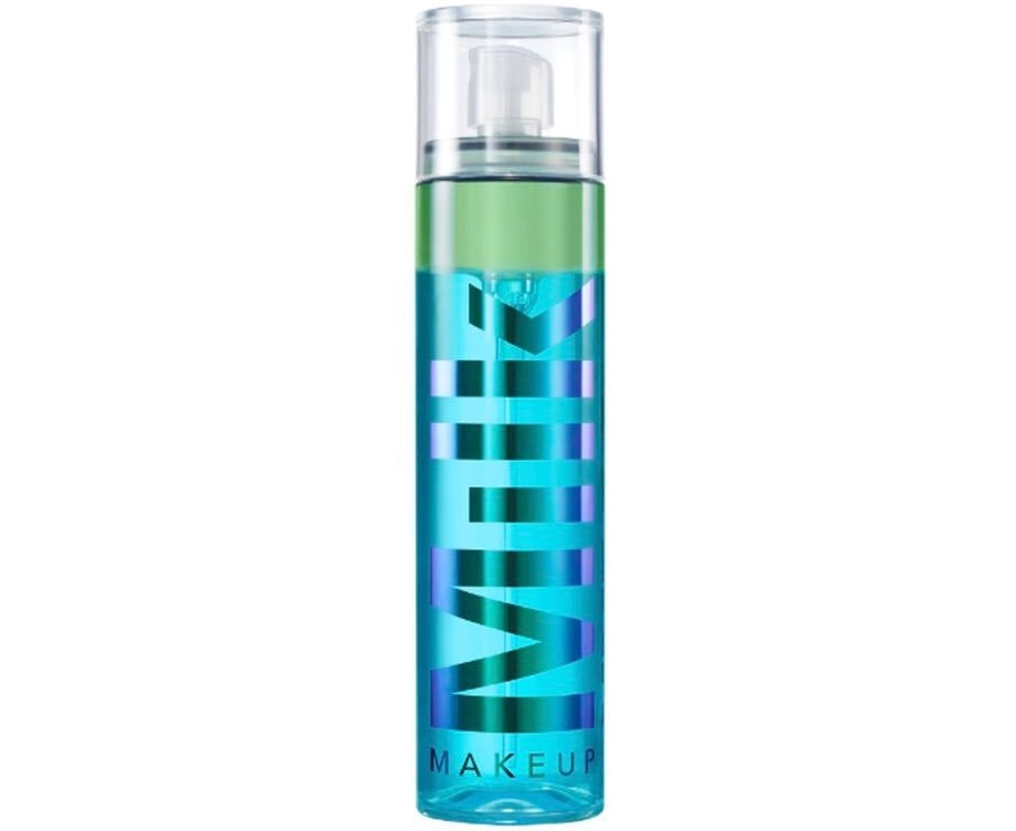 シンガーのビリー・アイリッシュが愛用していることでも知られているのが、写真映えするポップなパッケージでありながら、果物や野菜から摂れた天然の有効成分を使用するなどデザイン性、安全性、機能性を兼ね備えたNY発のブランド、ミルク・メイクアップ(Milk Makeup)。スコットは、同ブランドのセッティングスプレー「ハイドロ・グリップ・セット+リフレッシュスプレー」がお気に入りだそう。