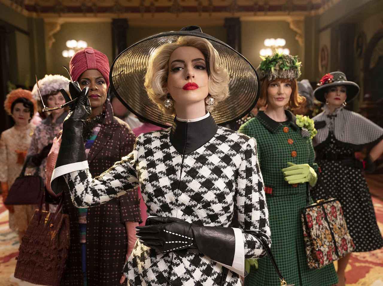 これまでに『プリティ・プリンセス』や『プラダを着た悪魔』、『レ・ミゼラブル』など、ジャンルの違う様々な作品に出演してきたアンが、特殊メイクによって超怖い魔女を演じて新たな顔を増やしたことは、話題に。とくに、人間のフリをしている時はすごくおしゃれだけれど、魔女の顔になると超怖いという変化には、メイクやヘアのスタッフの技術が遺憾なく発揮されている。
