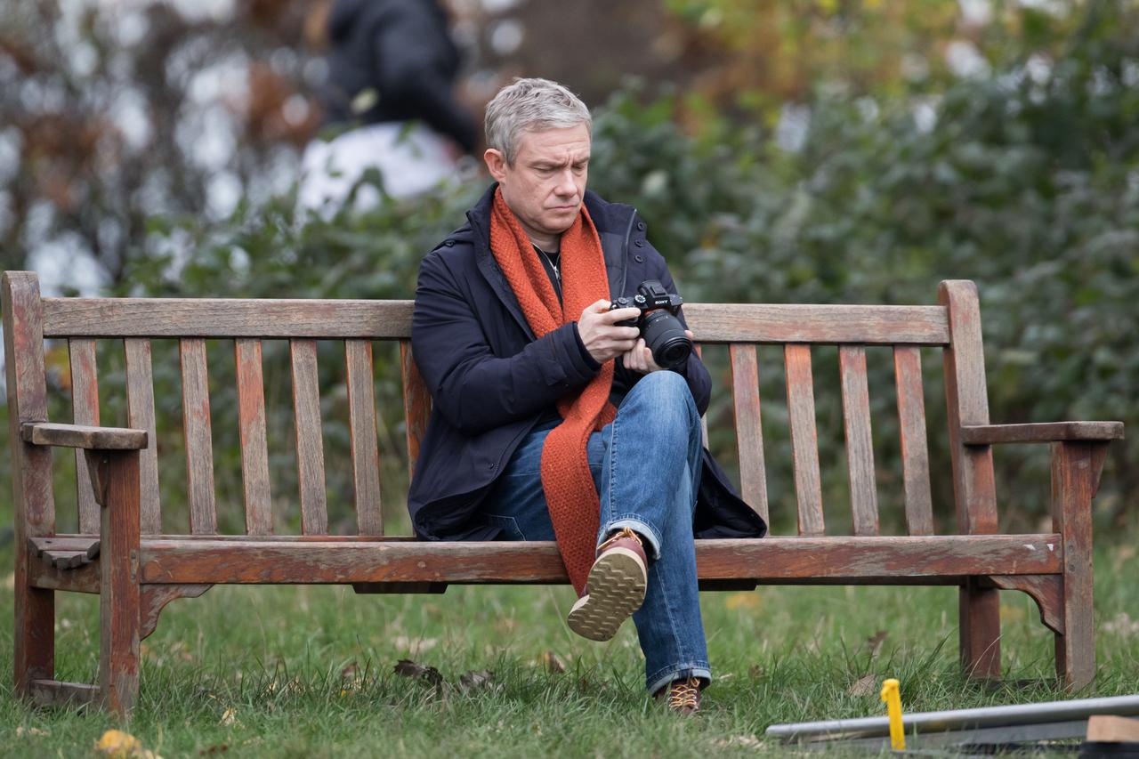 マーティン・フリーマン、撮影中に“小道具”に気を取られてイジくりまわす【写真アリ】
