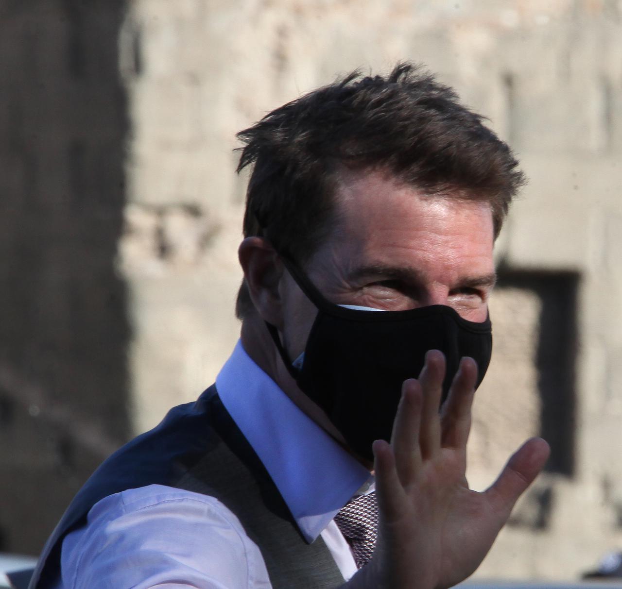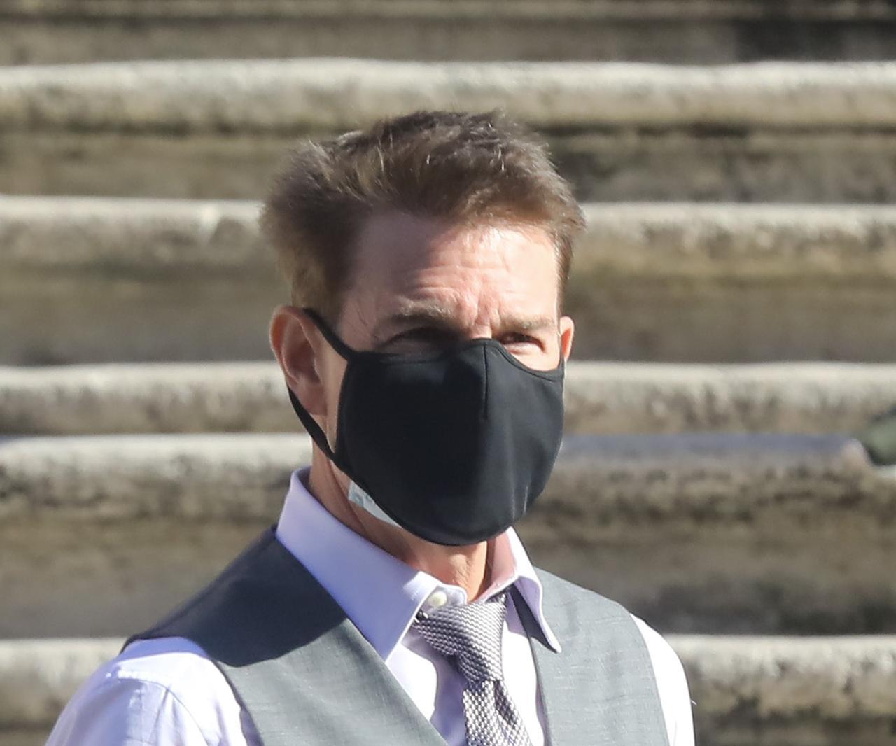 俳優のトム・クルーズが映画『ミッション:インポッシブル』の撮影をしている姿をキャッチ。本番以外は新型コロナウイルスの感染対策でマスクをしているのだけれど、トムがしていたマスクには秘密が隠されていた。(フロントロウ編集部)