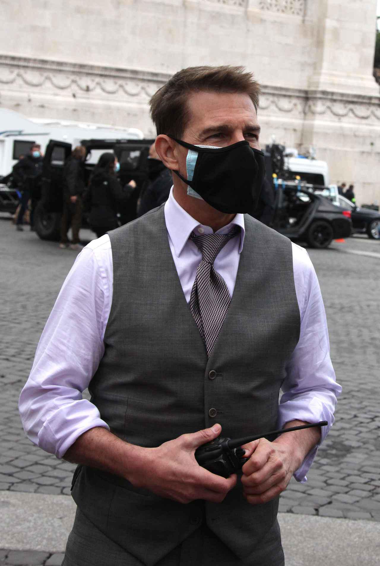 『ミッション:インポッシブル』はトムを中心となり撮影が進められていることで有名だけれど、こうしてマスクを2枚しながら慎重に慎重を重ねて感染症対策をするところにもチームのリーダーとしての姿が垣間見られた。