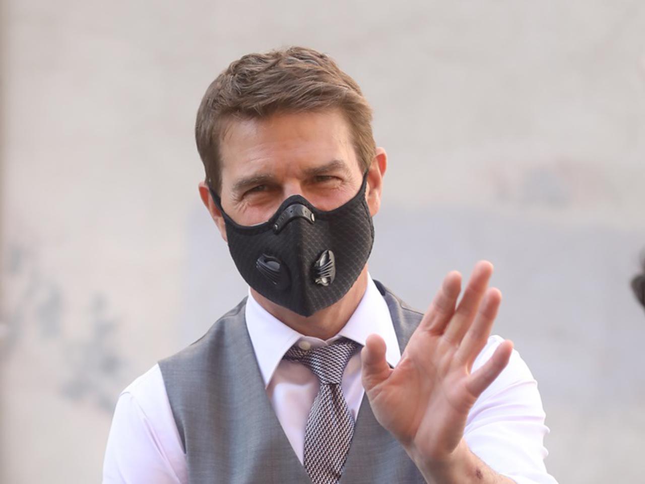 俳優のトム・クルーズが映画『ミッション:インポッシブル』の撮影をしている姿をキャッチ。本番以外は新型コロナウイルスの感染対策でマスクをしているのだけれど、トムがしていたマスクには秘密が隠されていた。(フロントロウ編集部)