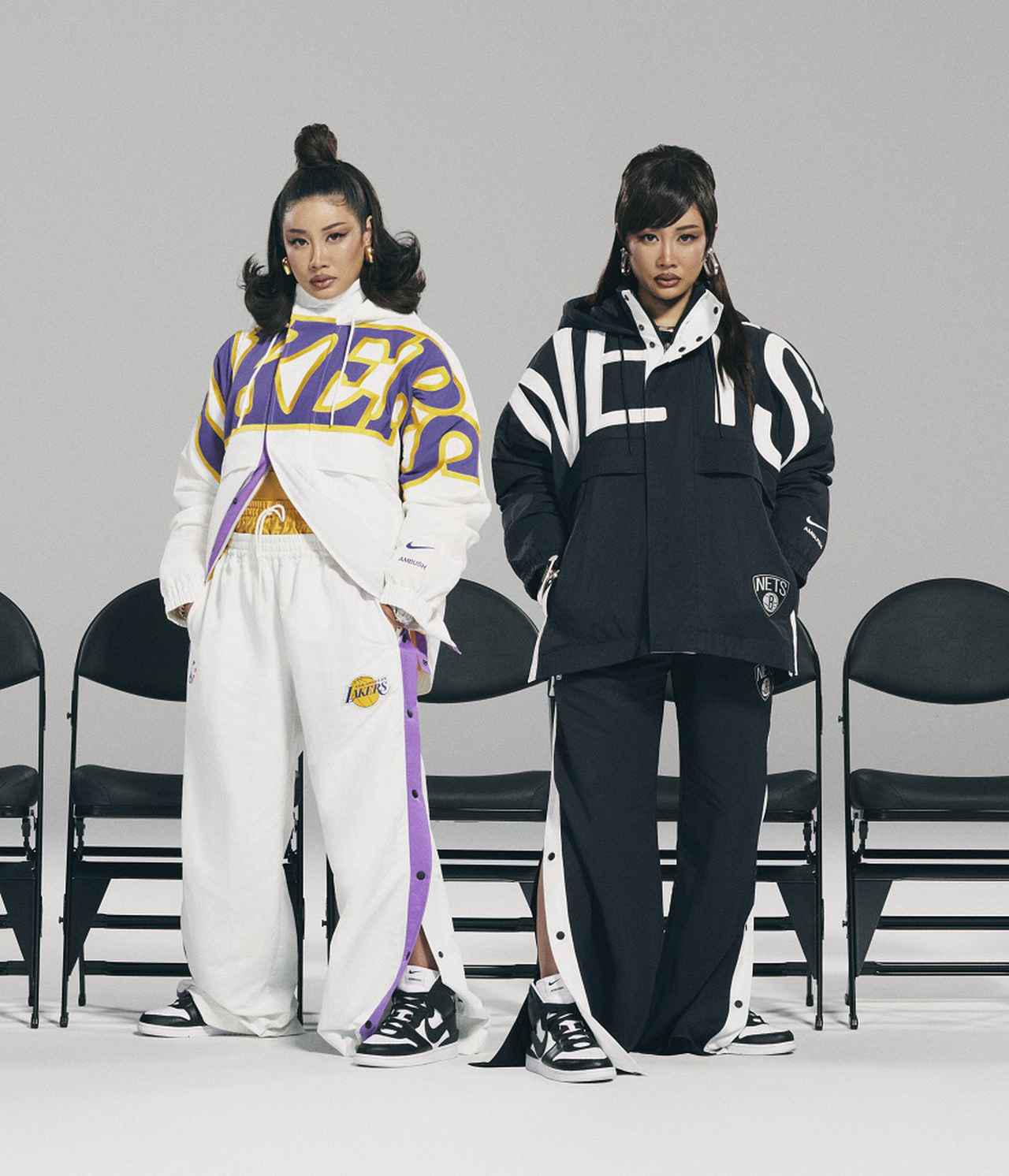NBAとコラボレーションする初めての女性デザイナーとなる AMBUSH®のクリエイティブディレクターYOONは、バスケットボールファンの女性に向けて、エネルギッシュでAMBUSH®らしいディテールのフレッシュなスタイリングを提案。AMBUSH®クリエイティブディレクターのYOONが、ロサンゼルス・レイカーズとブルックリン・ネッツのユニフォームを再解釈したアイテムが登場する。