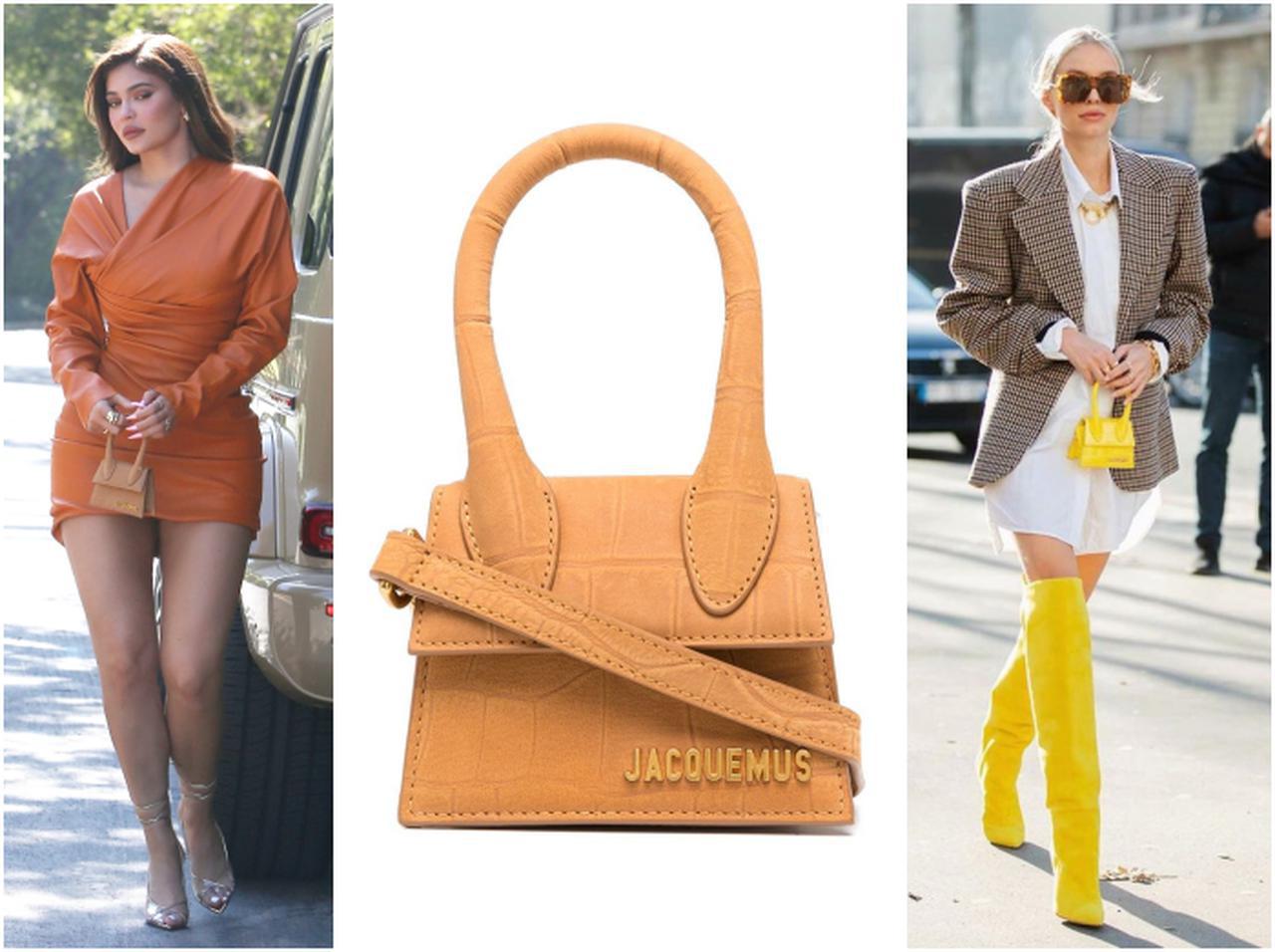 実業家でリアリティスターのカイリー・ジェンナーはデザインドレスにジャックムスの「チキート」でオレンジ系のグラデコーデを作って。ファッショニスタのレオニー・ハンネは、イエローのサイハイブーツに同色のチキートバッグでファッショナブルに目立って。