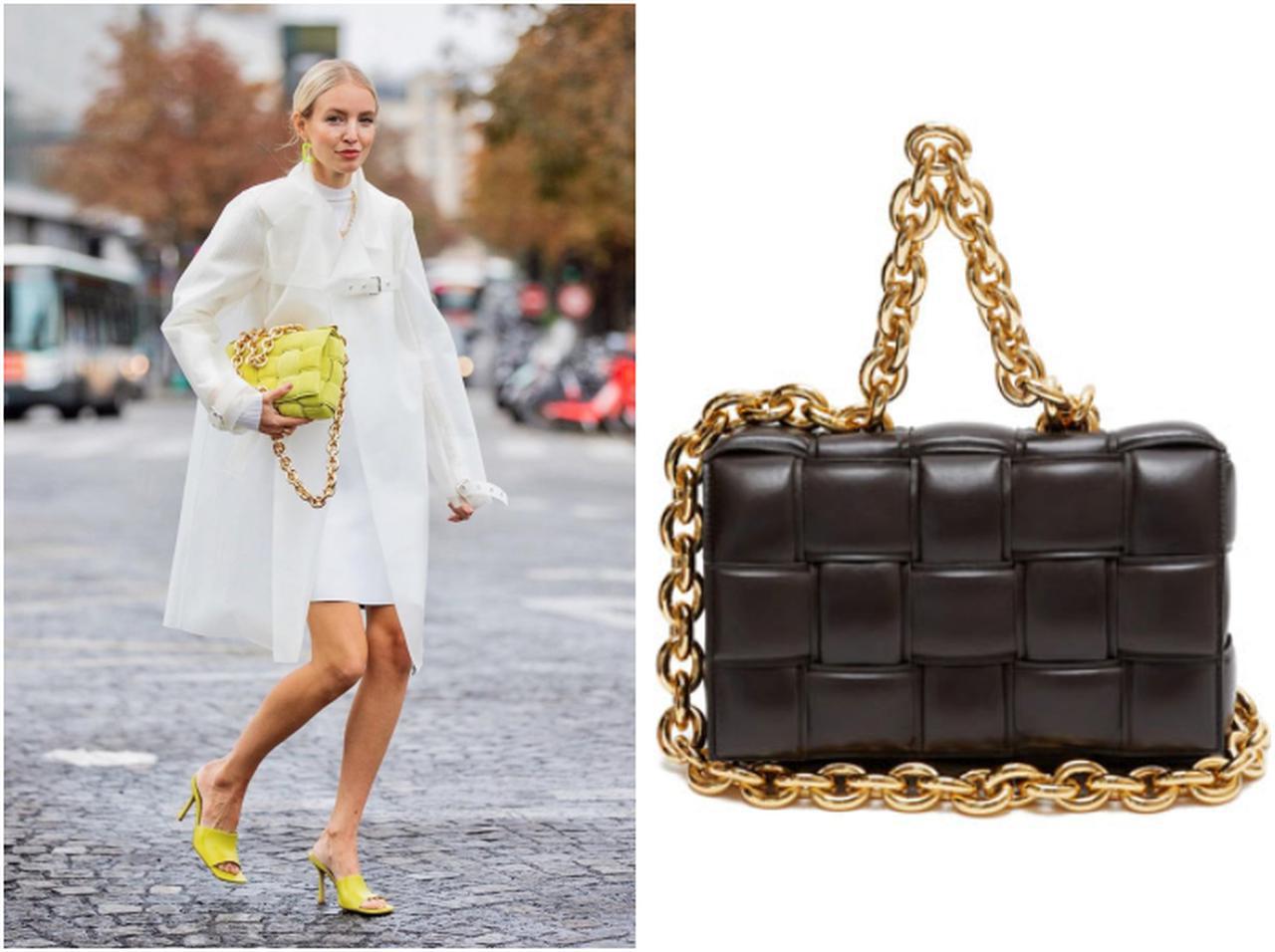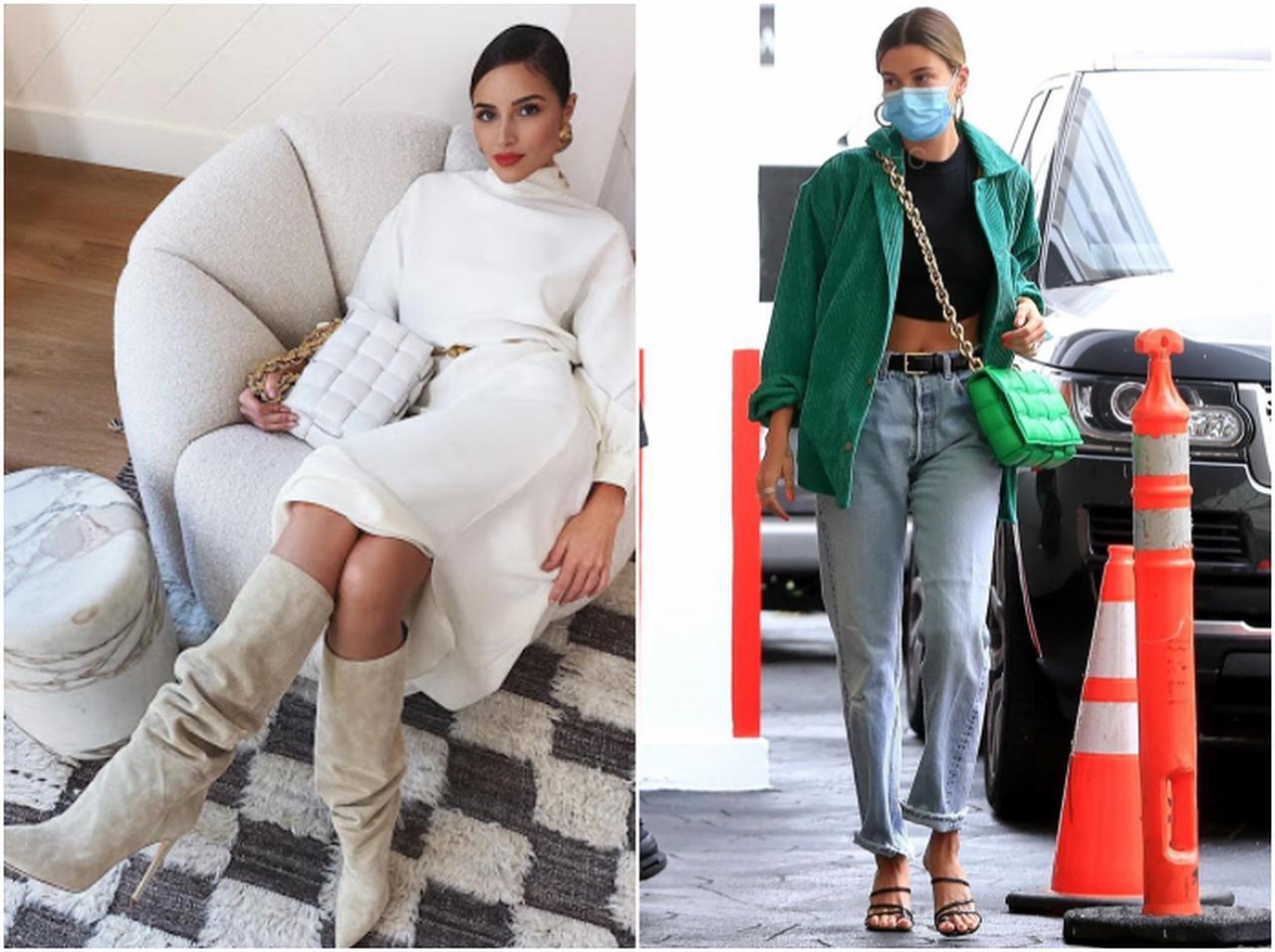 コーデのアクセントになるボッテガ・ヴェネタ「ザ・チェーン カセット」バッグは、レオニー・ハンネやモデルのオリヴィア・カルポのように、エレガントな装いにモードなスパイスをプラス。また、モデルのヘイリー・ビーバーのようなラフなデニムスタイルもラグジュアリーに格上げしてくれる逸品。
