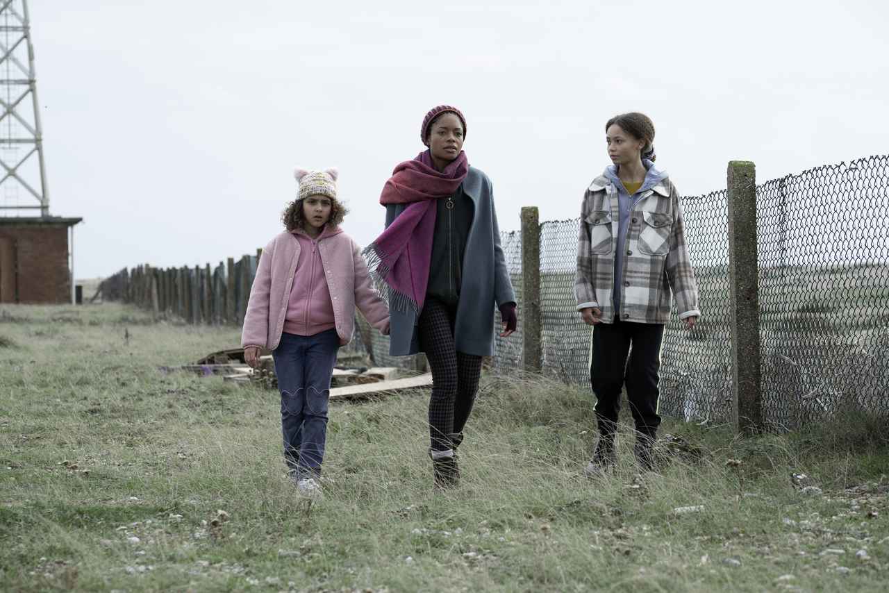 ナオミ・ハリス:このドラマの撮影には全く影響なかった。撮影が終わってしばらくしてから感染が拡大したから。個人的には、それ以来仕事をしていない。(インタビュー時点)8月20日に撮影に入る予定の仕事があったんだけど、延期が続いていて今は11月スタートの予定になっている。とても異例なことだけど、でもみんな状況は同じ、みんな同じ問題に直面しているからね。現場の雰囲気については、主な共演者が私の娘を演じる2人の女の子で、私のシーンのほとんどが彼女たちと一緒だった。そこでは3人のケミストリーが大事だということで、これは大変だと思っていた。娘役のニコとシャーロットと顔合わせをした時、特にシャーロットの方は実は今回が初めてのお芝居ということだったから、本当に心配だったんだけど、彼女の起用はロウソープ監督の素晴らしい決断だったと思う。シャーロットはお芝居も撮影現場にいることもすべてが初めてだったから、それがとてもナチュラルな演技に繋がったの。彼女の動きは予測不能で、そのおかげで私の演技も引き上げられた気がする。常に集中して彼女と呼吸を合わせなきゃいけなかったから。本当に素晴らしかった。ニコも素晴らしい女優で、私たちは3人ともすぐに仲良くなったし絆も深まった。だから、撮影が終わって別れる時は本当に自分の娘と別れるような気持ちになって悲しかった。とても深い絆が築けたと思う。