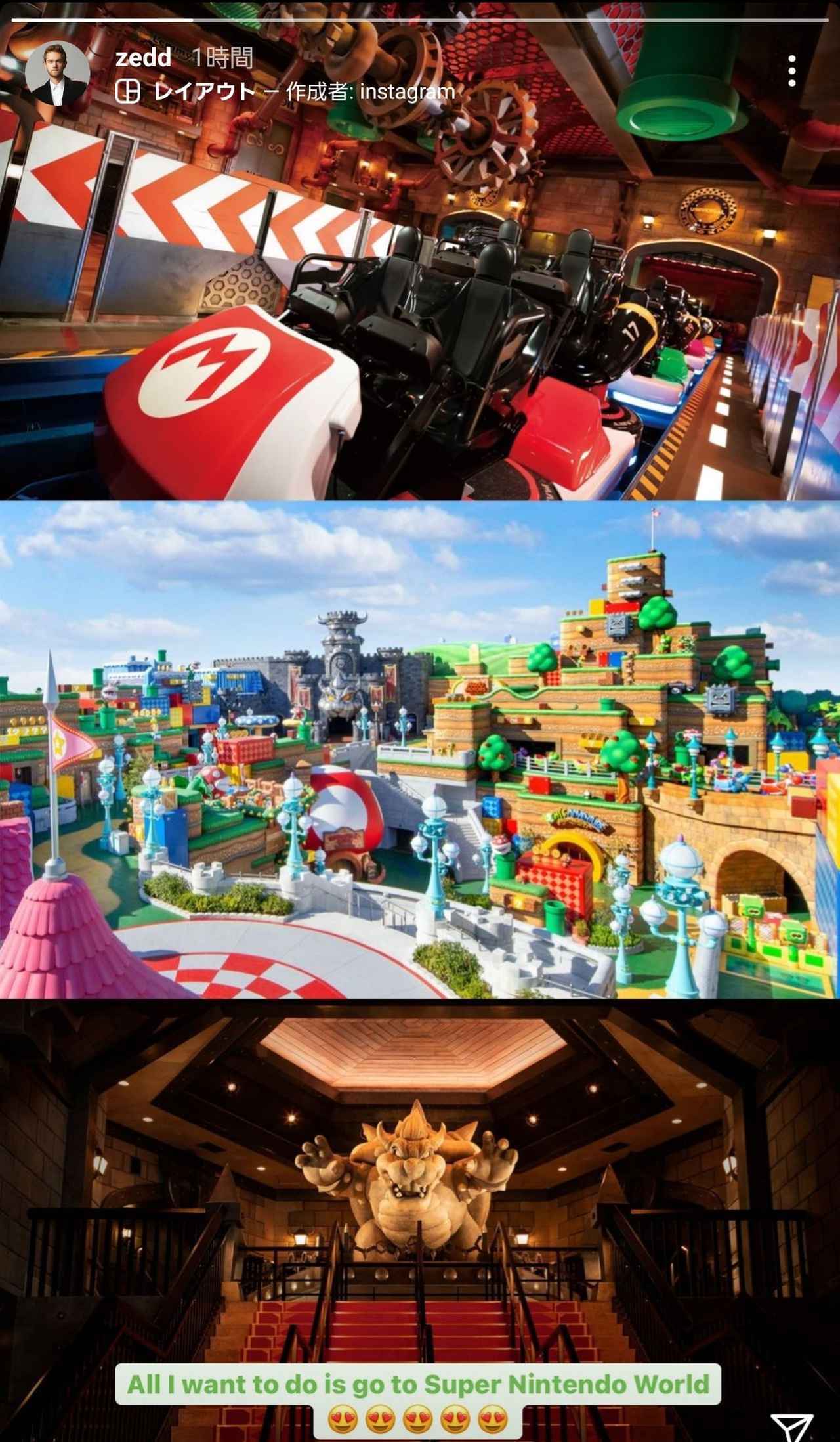 セレブの中にもユニバーサル・スタジオ・ジャパンを訪れたいと願う人が多く、人気DJのゼッドはインスタグラムで「僕の唯一の願いはスーパー・ニンテンドー・ワールドに行くこと」とキャプションをつけ、USJへ行きたいということを切望した。