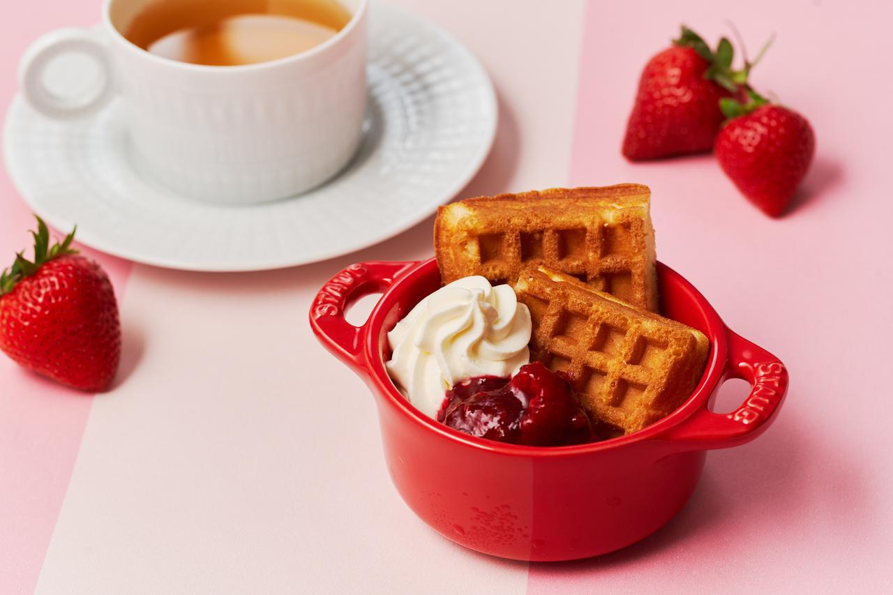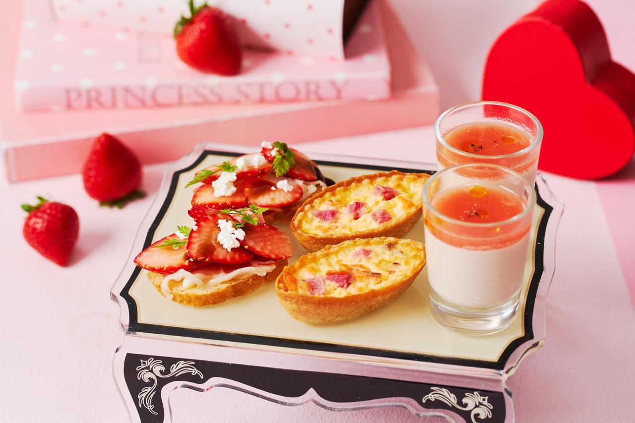 スイーツのほかにも、イチゴと生ハムを合わせたオープンサンドや、ピンク色に仕上げたオイルサーディン、ポルチーニ茸が豊かに香るキッシュなどのセイボリーも登場。