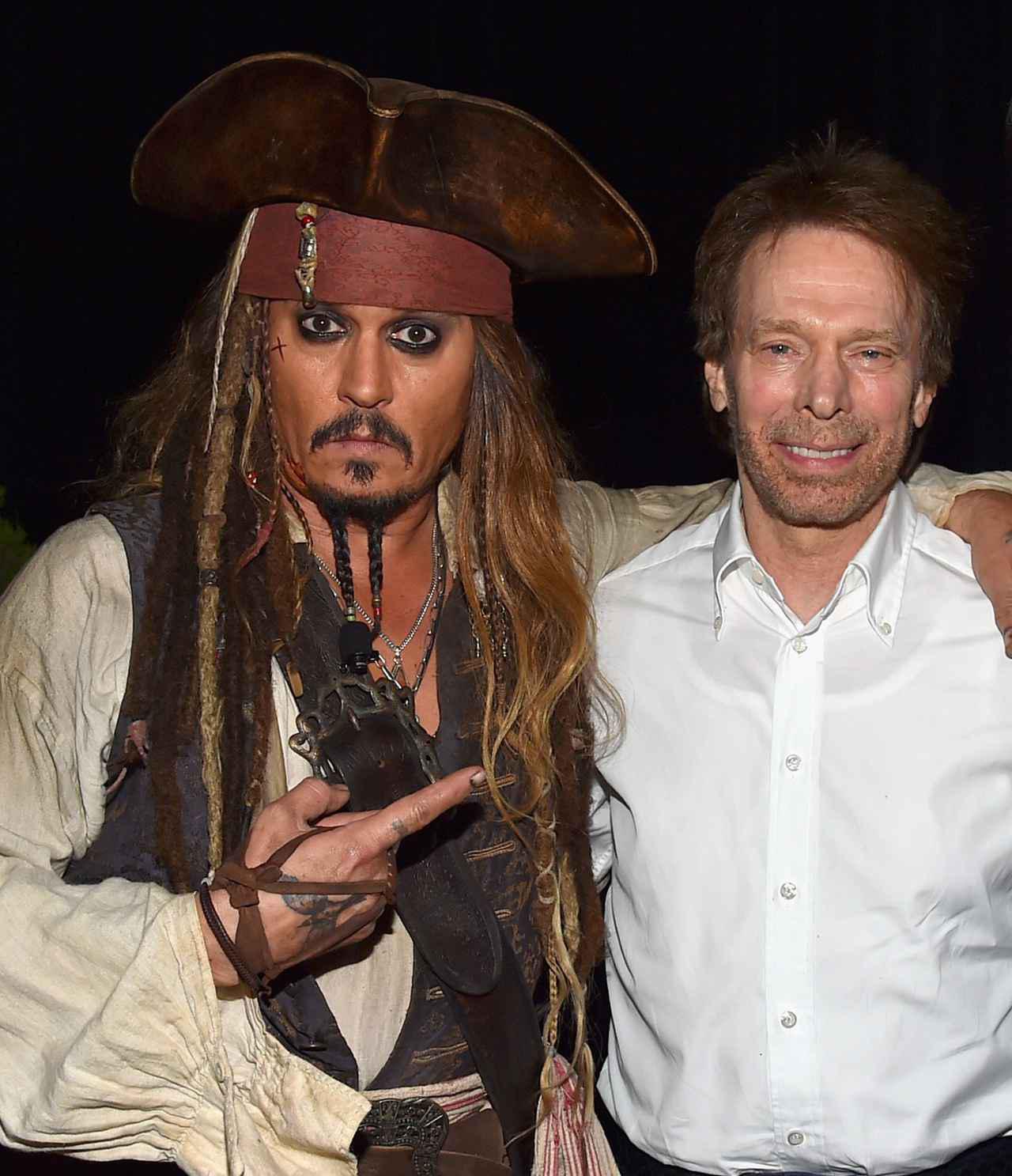 ジャック・スパロウに扮したジョニー・デップ(左)とジェリー・ブラッカイマー氏(右)。